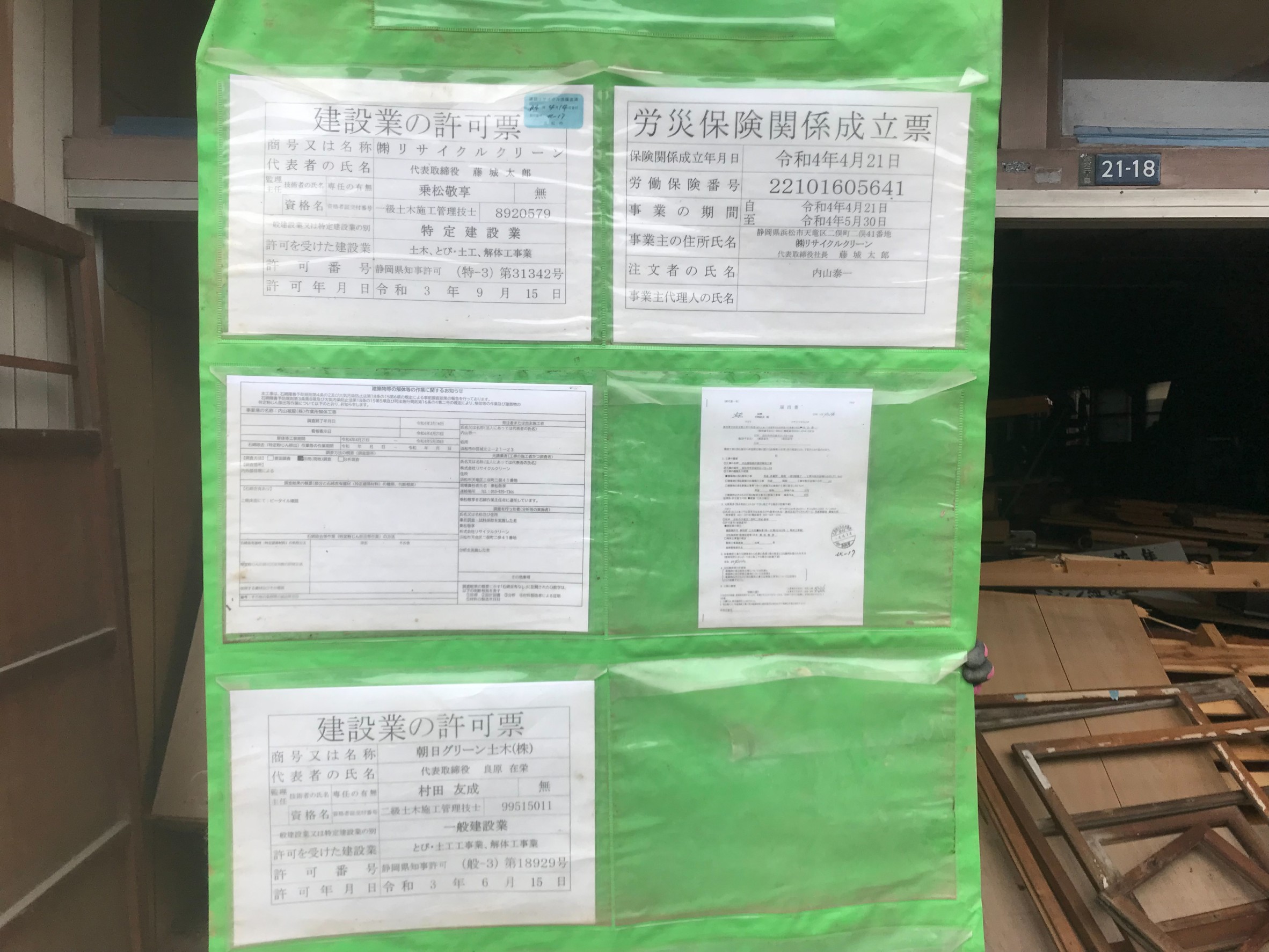 こちらは、おなじみの建設業許可証等の掲示状況です。