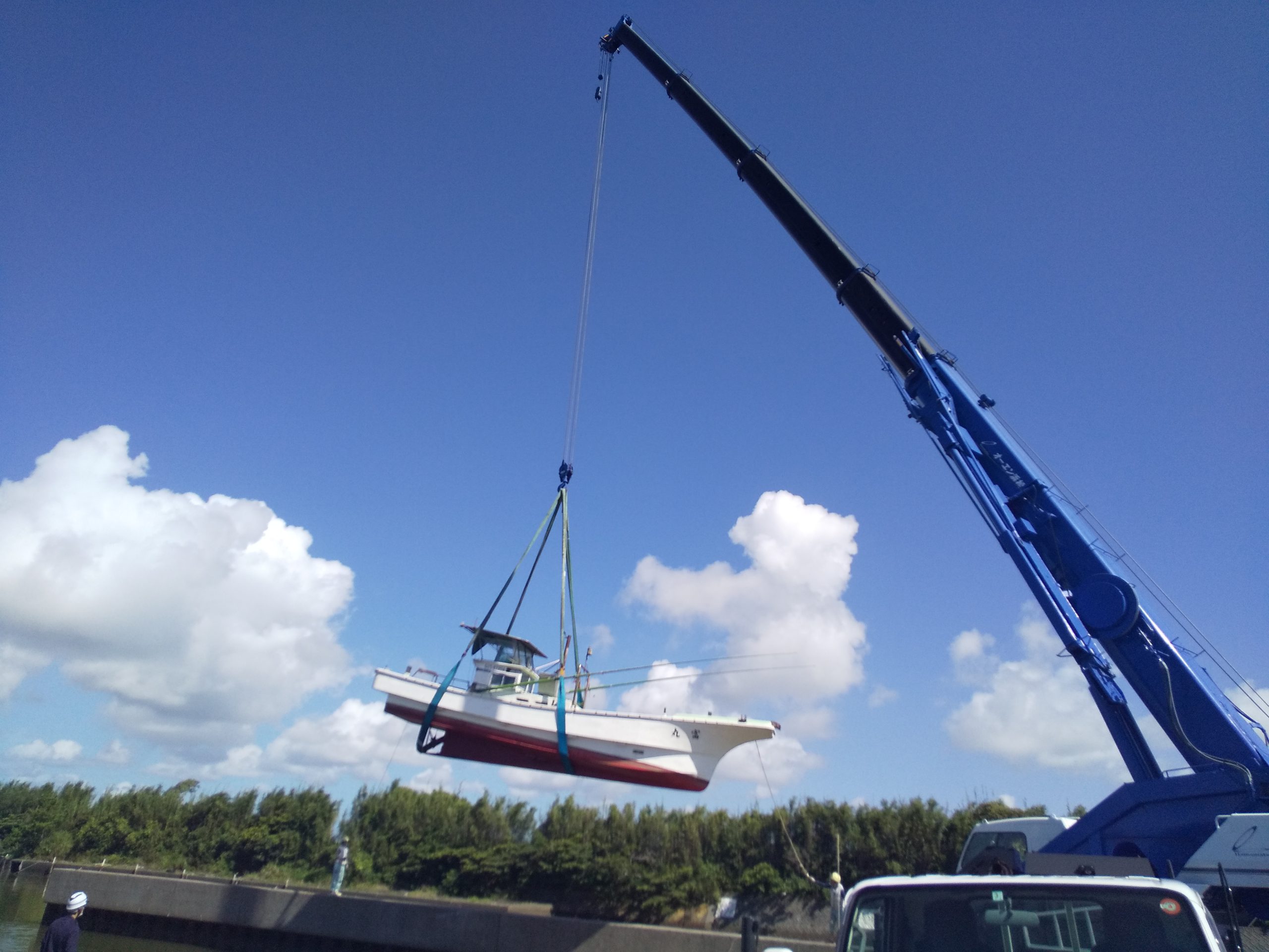70トンのレッカーを使用しての陸上げです。