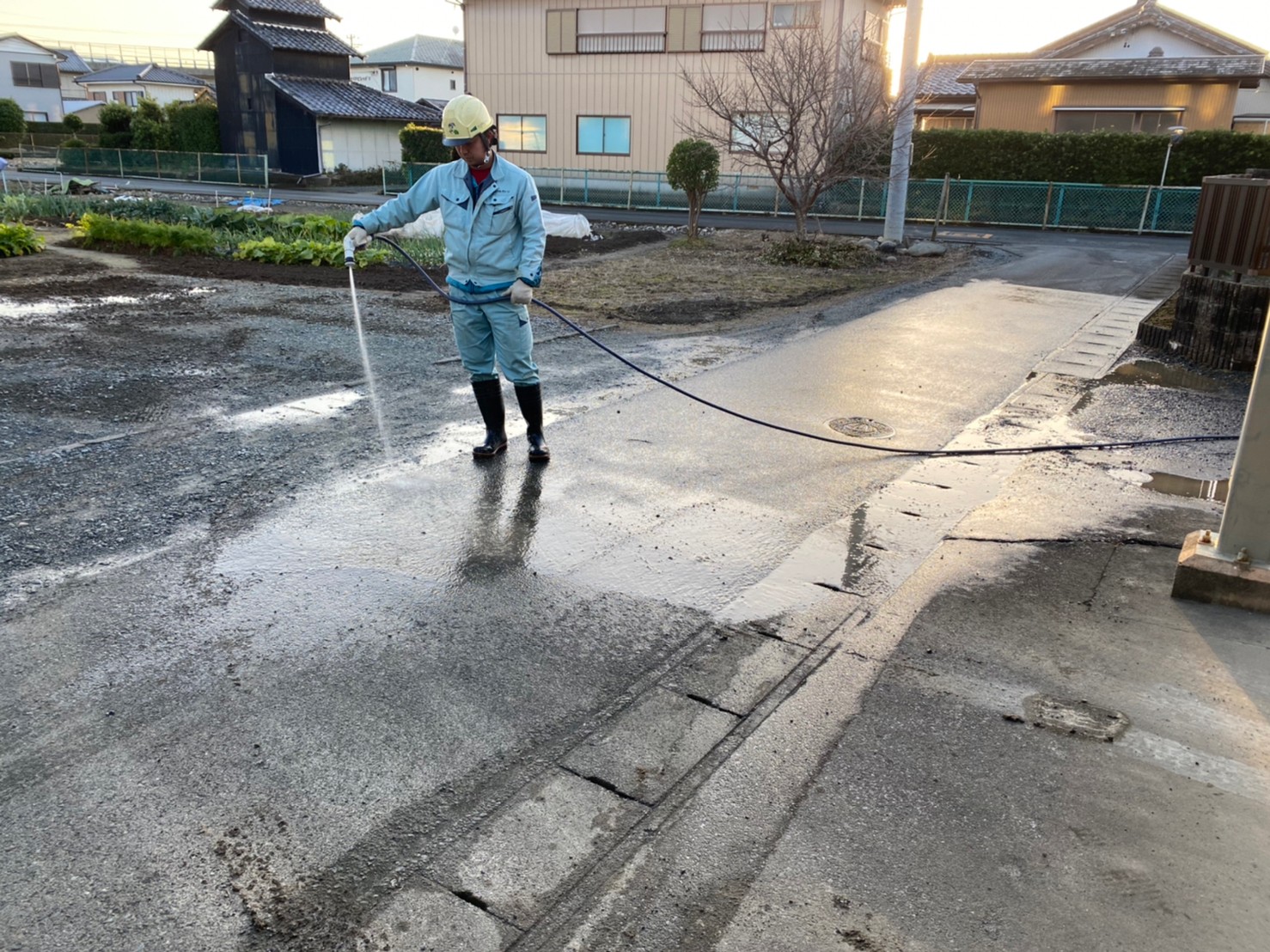 最後に感謝の気持ちを込めて前面道路の掃き掃除と水を使用しての清掃し完了となります。