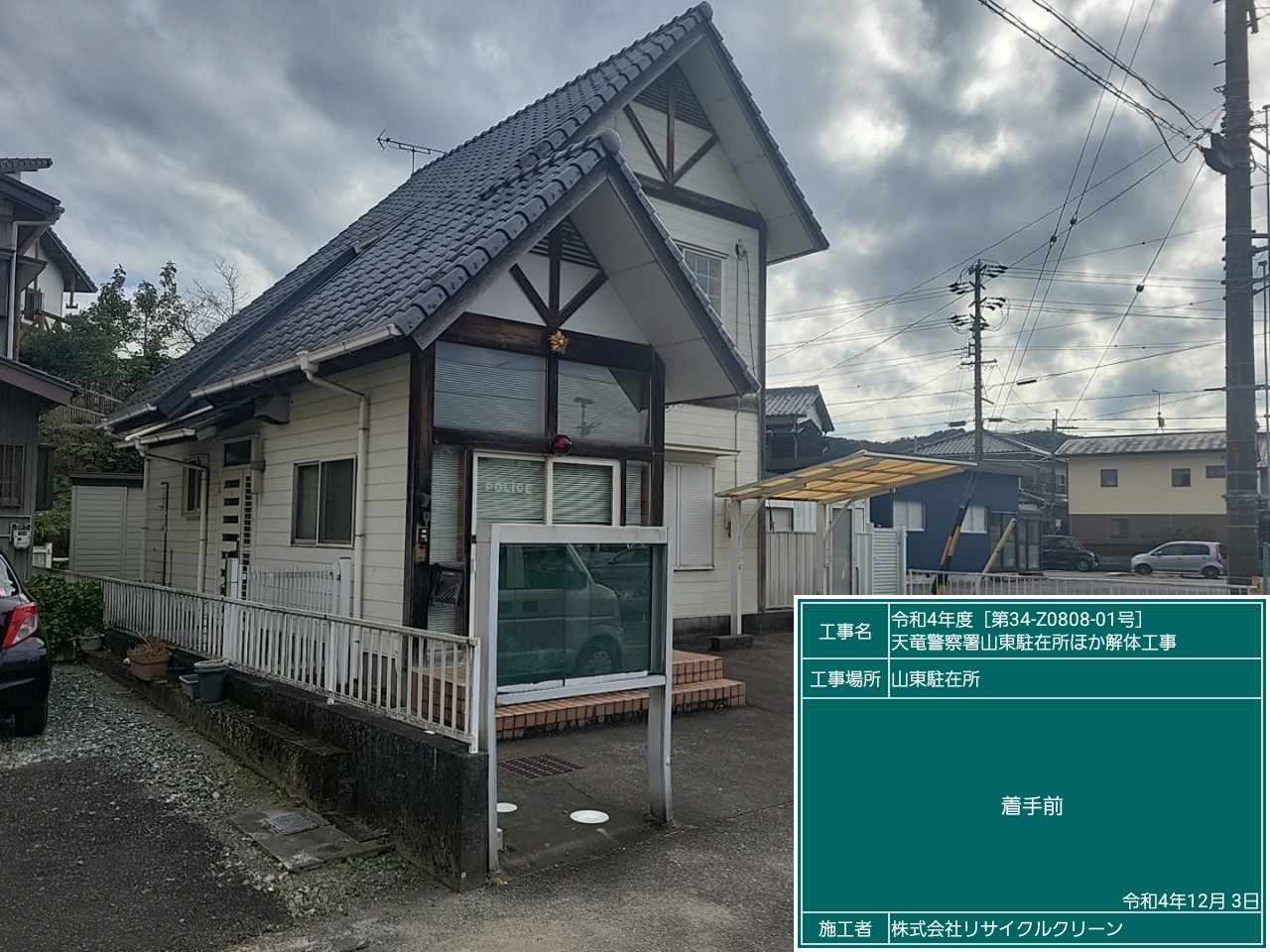 浜松市天竜区山東にて公共工事で駐在所の解体を行いました。