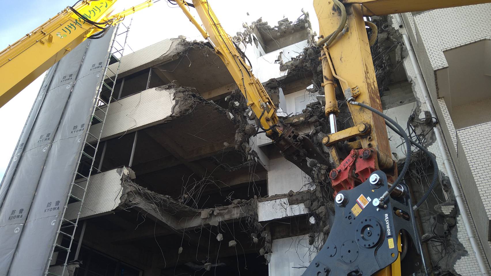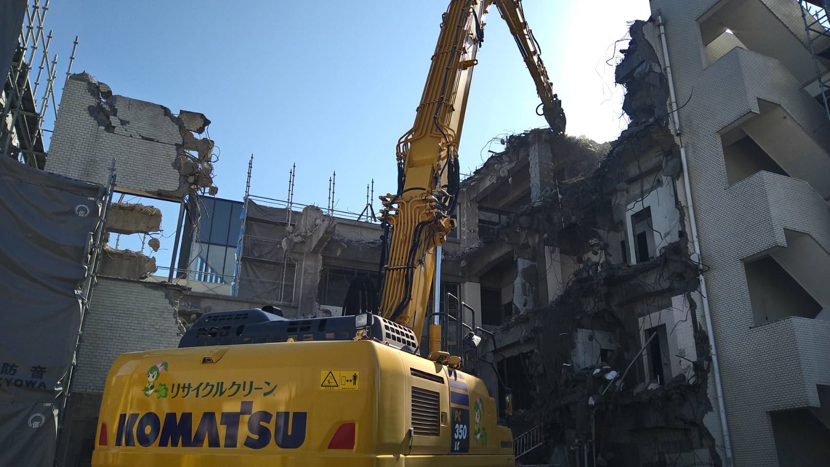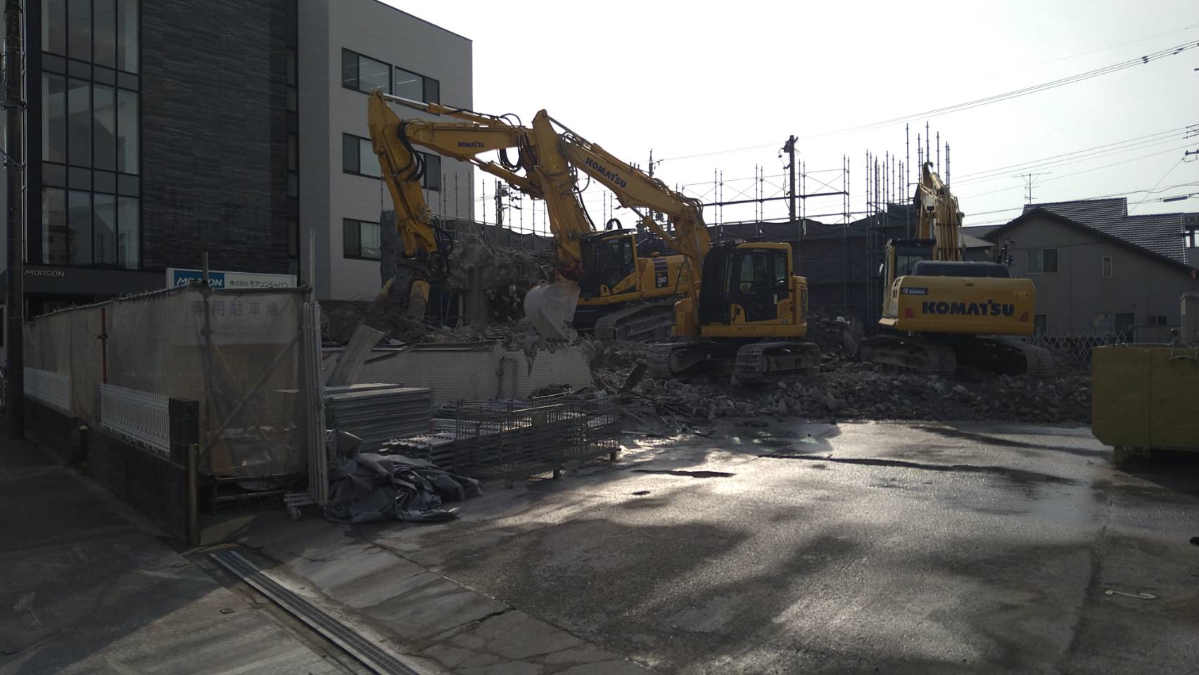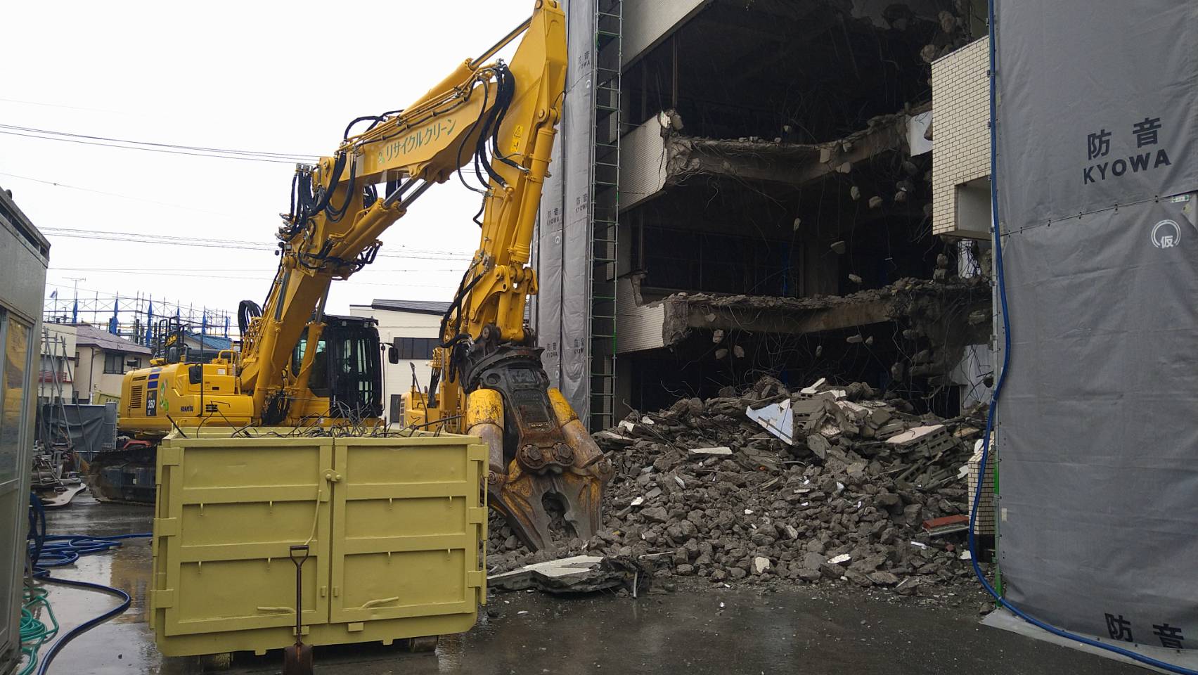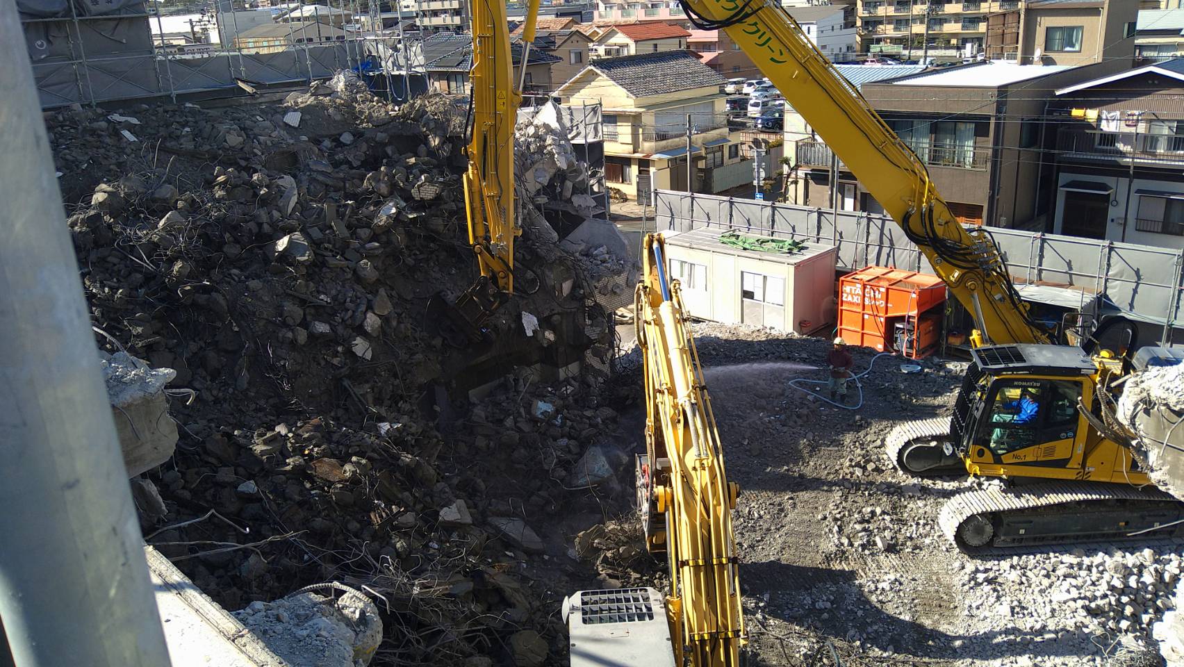 1月初旬から施工していたRC5階建ての事務所の解体も終盤となりました。