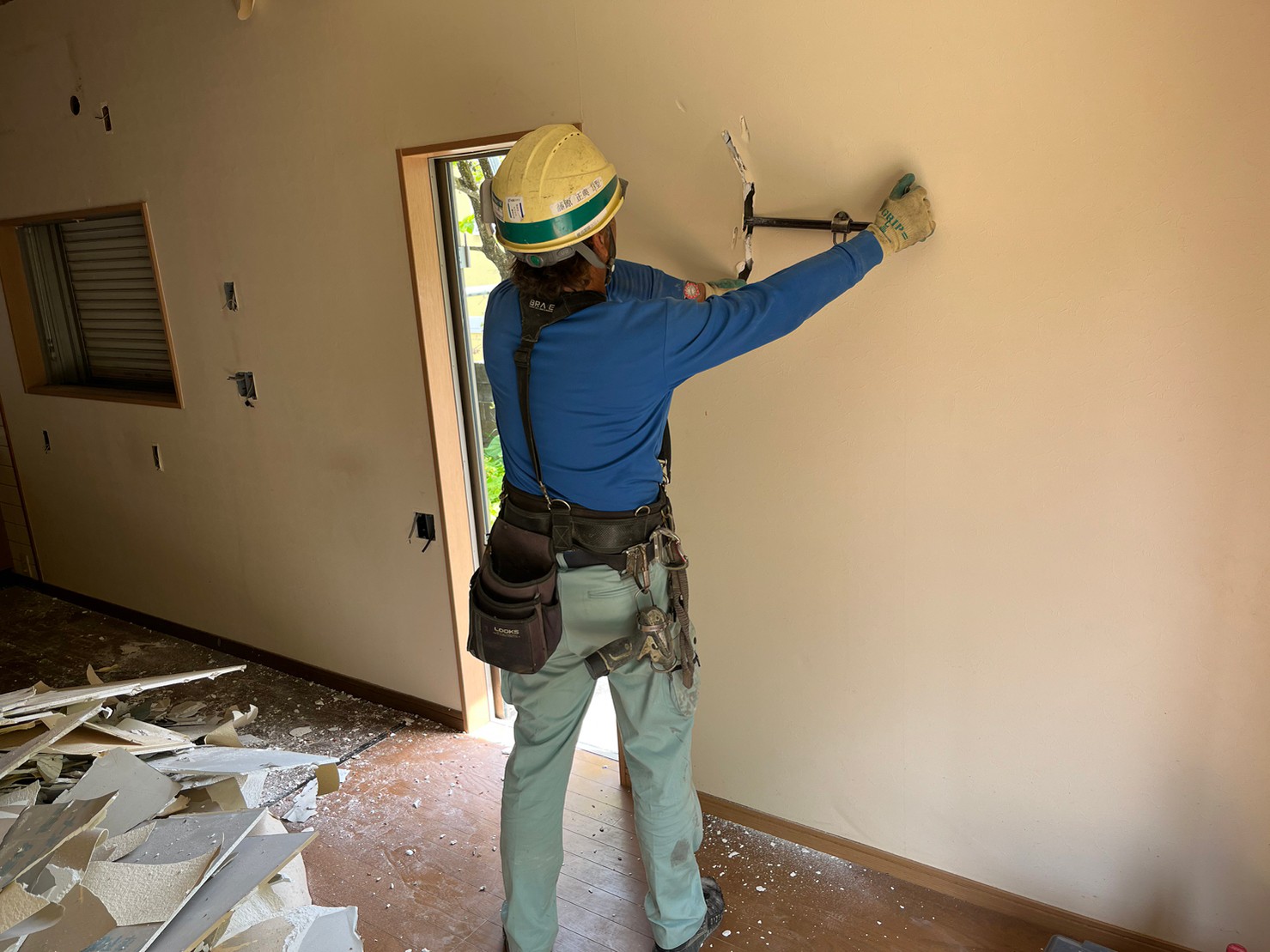 リフォームされていたこともあり、断熱材もしっかり入っており、耐震工事もされており、外壁の裏には構造合板が貼られておりました。