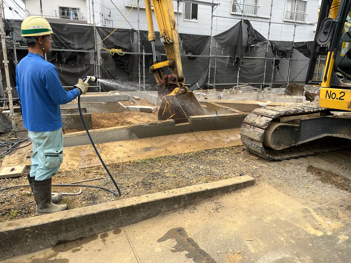 最初は狭かったですが、耐震工事をされていることから0.45m3(PC138US)の重機を選定し施工しました。