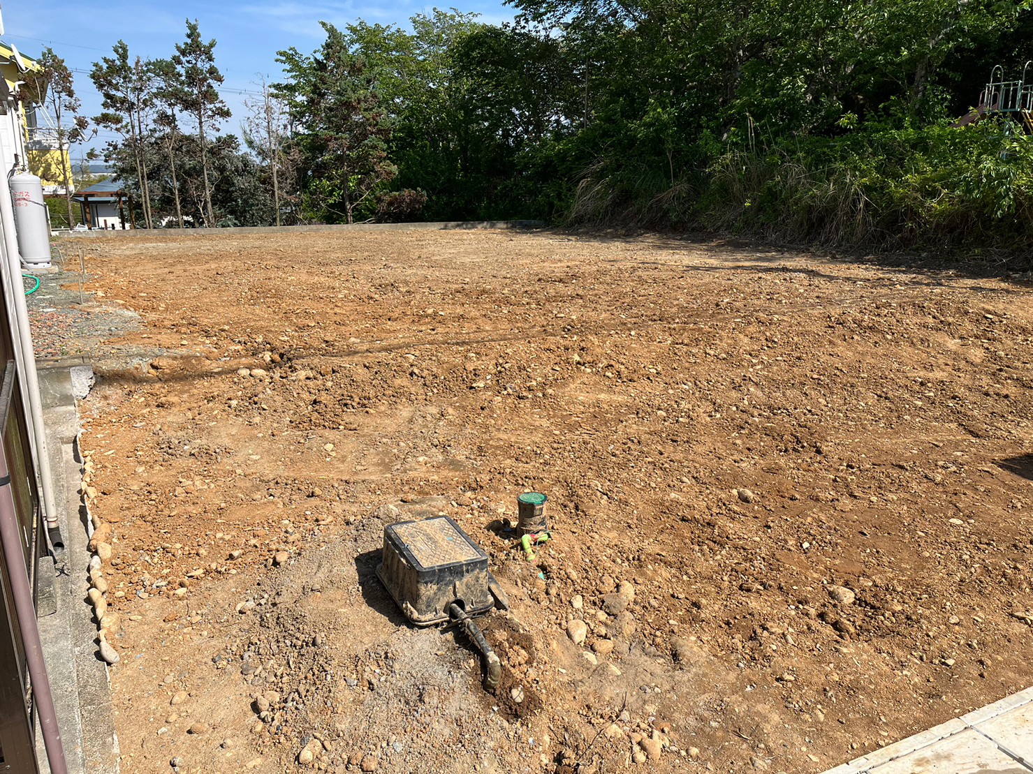 基礎解体後、外構、樹木の撤去をし、整地です。