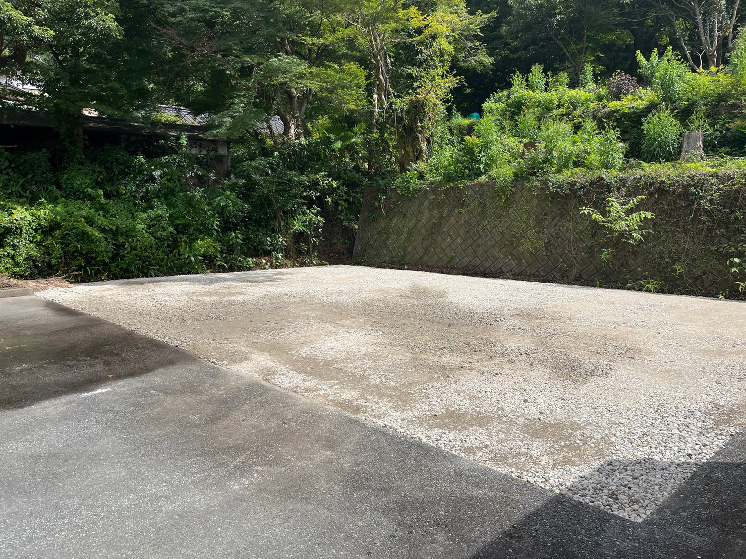 今回は解体跡地は駐車場もして利用するとの事から、不陸整正をした後、再生砕石にて仕上げました。