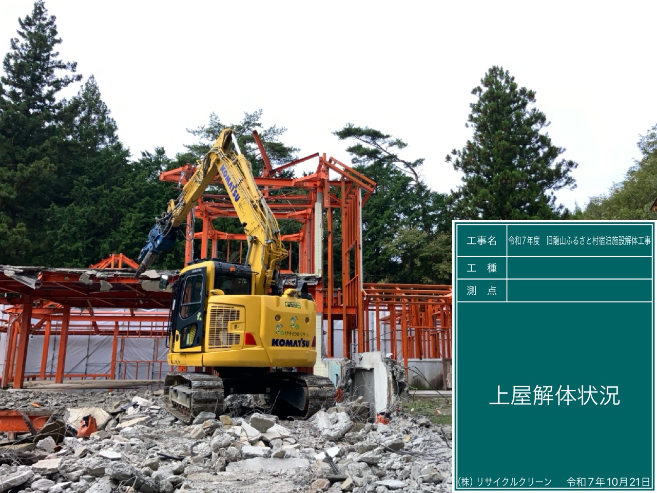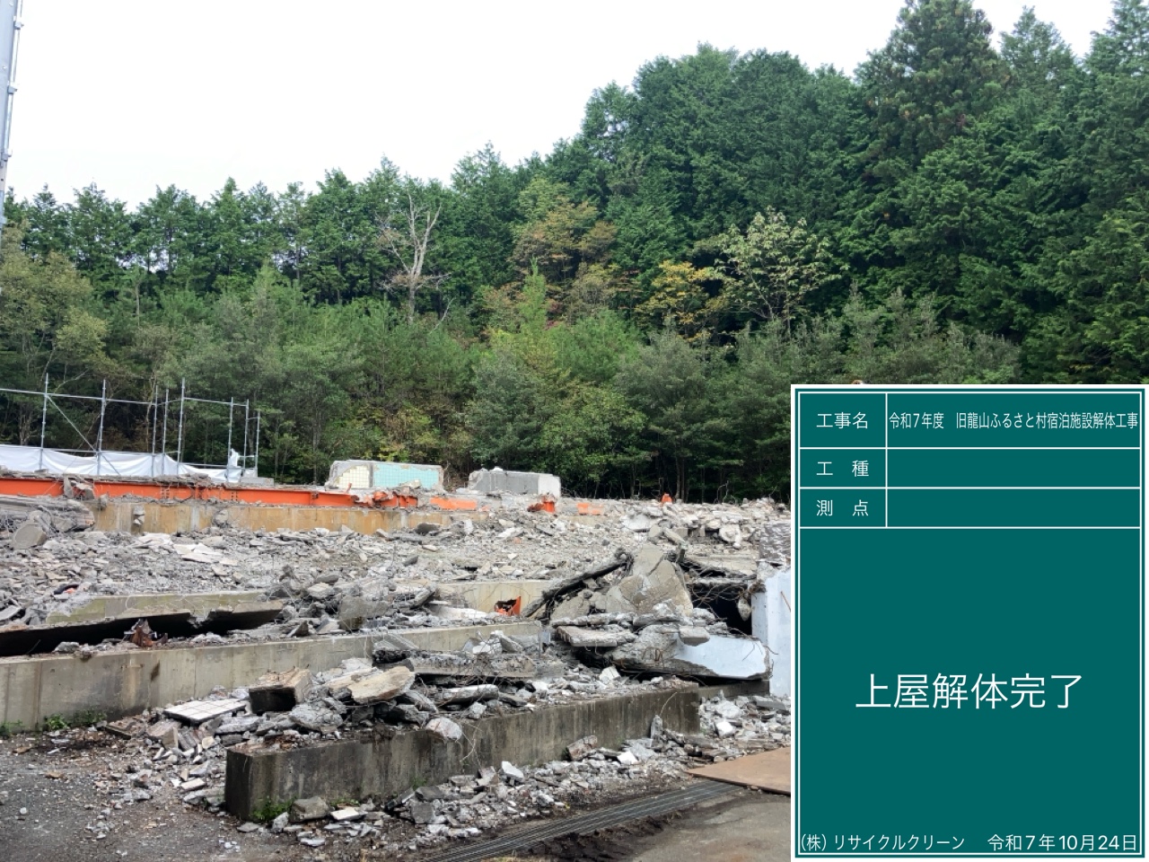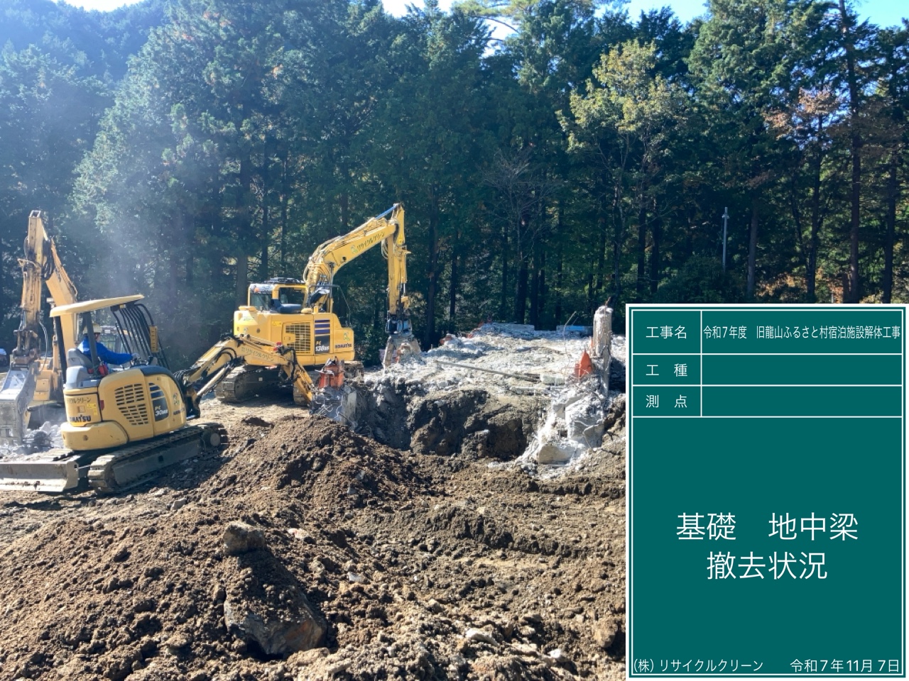 浜松市天竜区にて旧ふるさと村宿泊施設を解体しています。