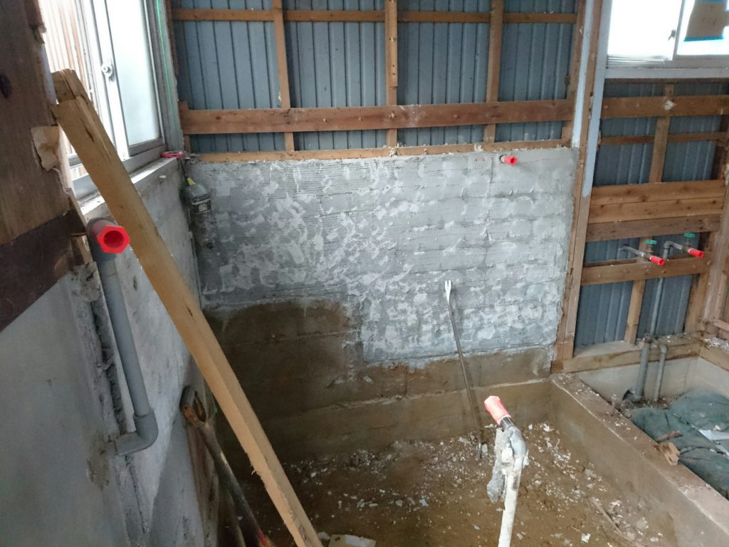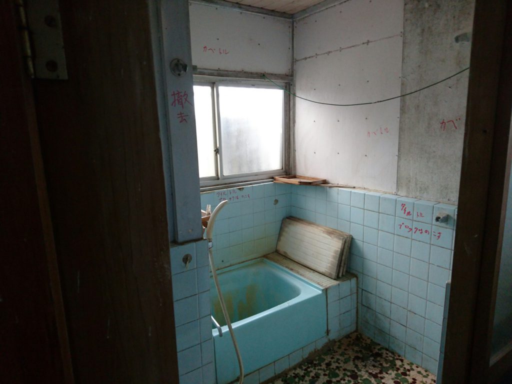 今回は、建物内部の浴室及び洗面台の部分解体となります。
