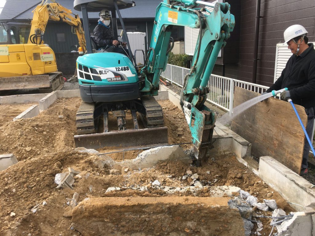 しっかりと散水措置を行いホコリが舞ってしまわないように作業を進めていきました!