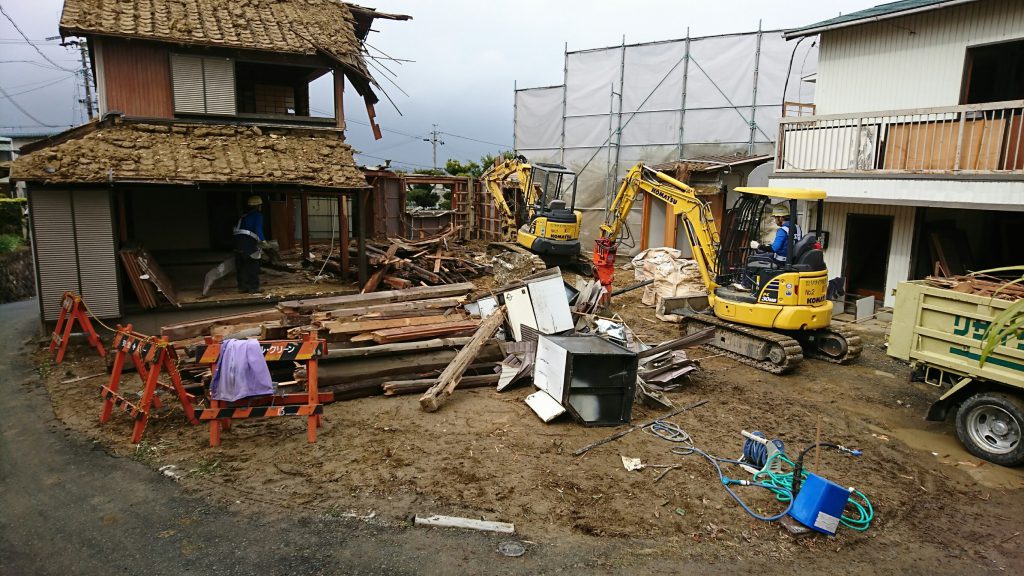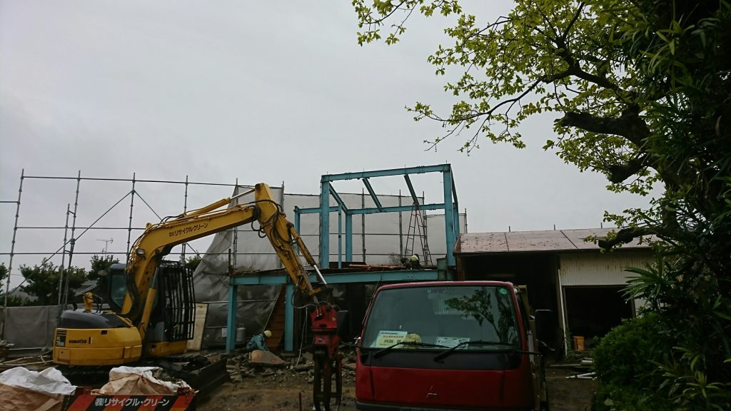 現場が狭小地であったため、解体に使用する重機も小さいものを使用しながら施工していきました。