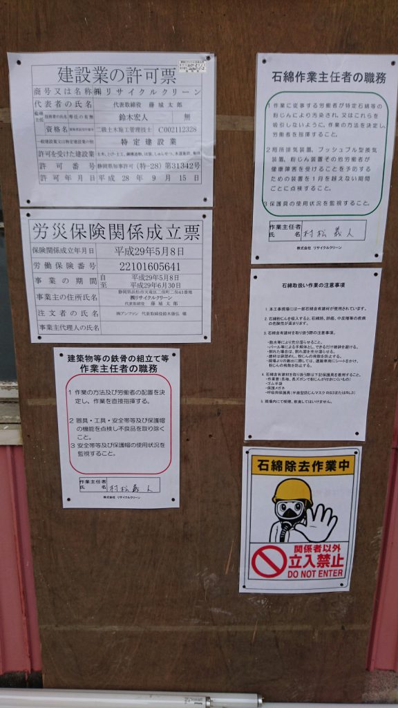 適正な処分方法と適切な工事看板表示にて何事もなく撤去することが出来ました。