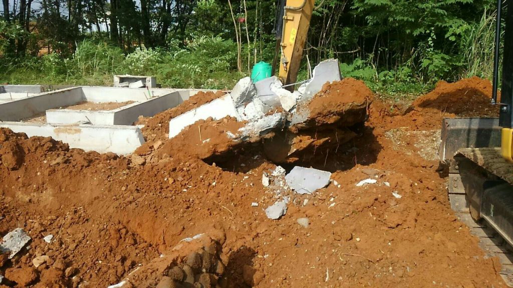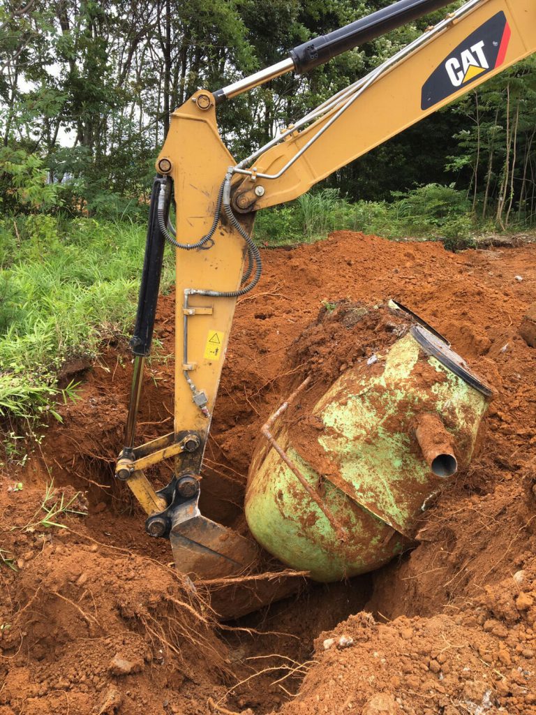 解体工事では、住宅に限らず、施設等の敷地内に埋設してある浄化槽の撤去まで行います。