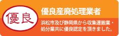 リサイクルクリーンは、静岡県及び浜松市から収集運搬業・処分業の「優良認定」を受けました。