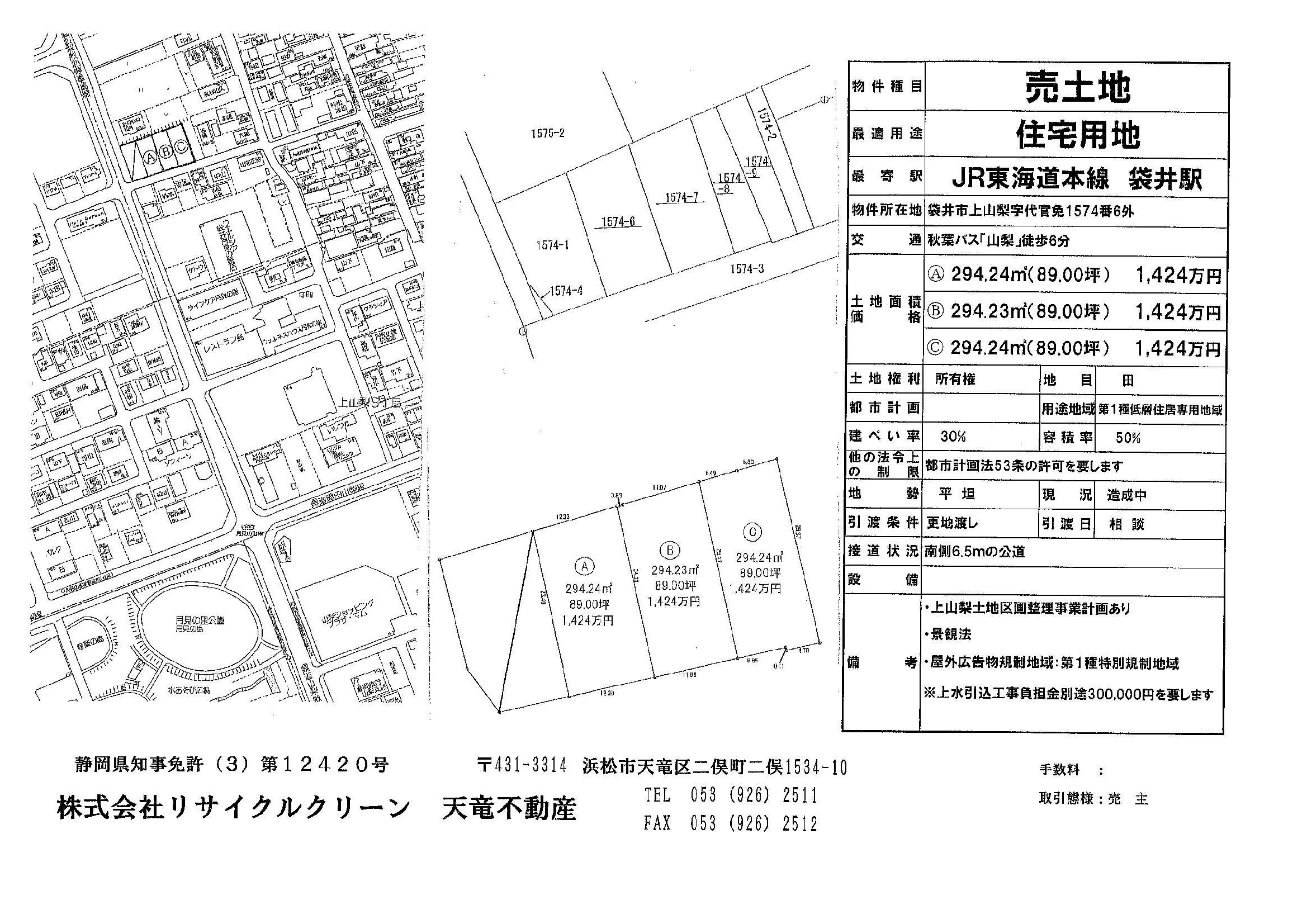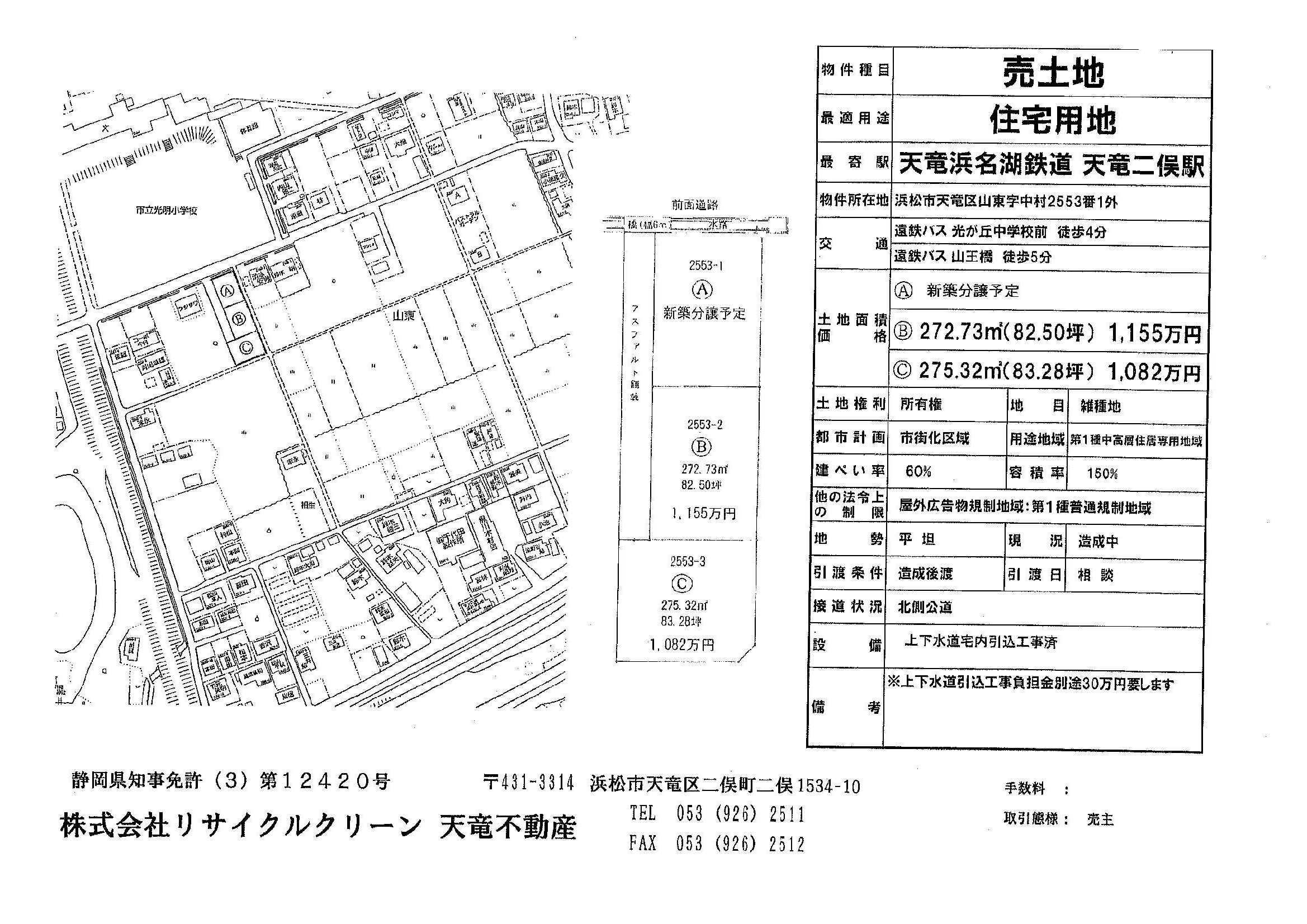 弊社不動産部門「㈱リサイクルクリーン天竜不動産」で分譲地中の物件(7区画)をご案内します。