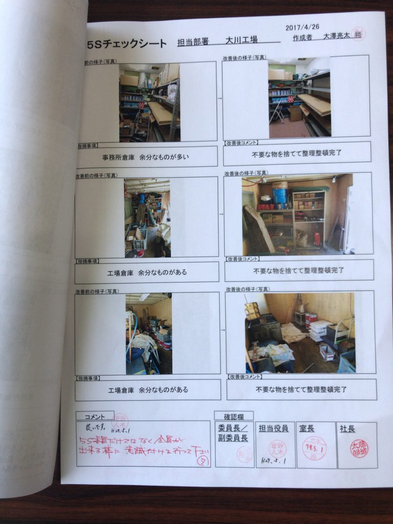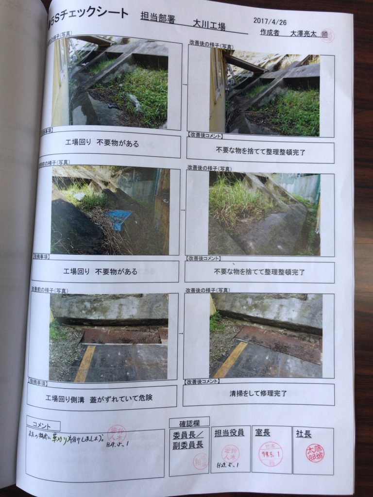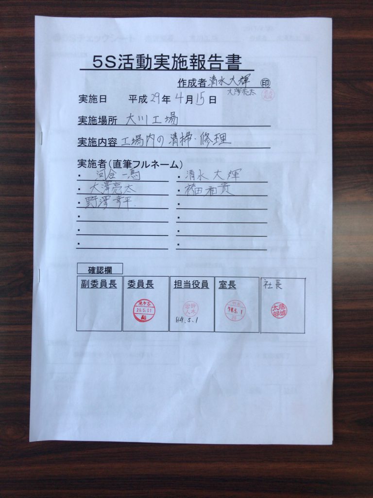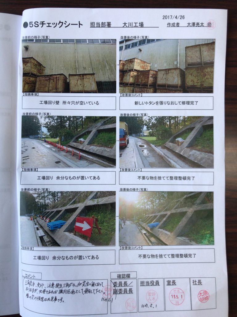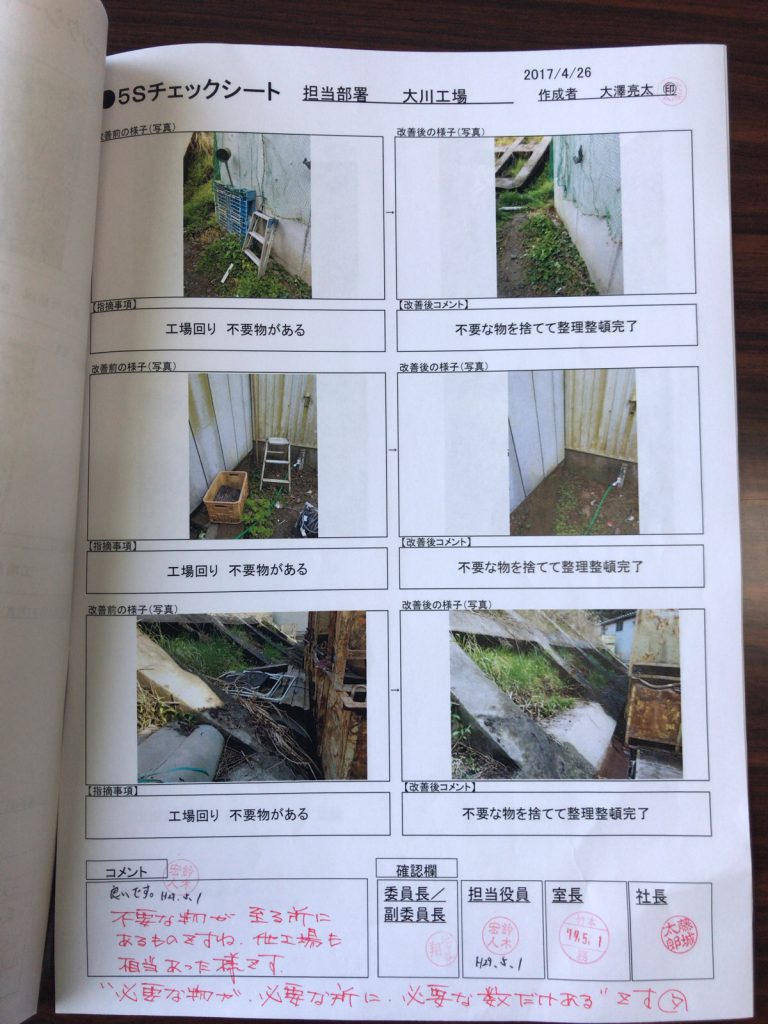 「経営理念に基づく社員教育の徹底」 「5S活動の継続 」「コンプライアンスの徹底」 「約束・規則・時間厳守」 「責任の明確化」「言い訳無用」「継続は力なり」