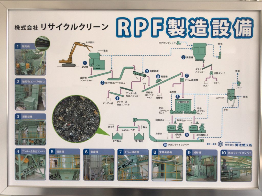 弊社の袋井RPF工場は、可燃性の廃棄物(廃プラスチック、紙くず、木くず、繊維くず)を原料として固形燃料(RPF)を製造しております。RPFとはRefuse Paper & Plastic Fuelの略で、化石燃料(石炭・石油 )の代替として、製紙会社、鉄鋼会社、石灰会社などで使用されます。弊社袋井RPF工場は、平成27年3月に完成しました。
