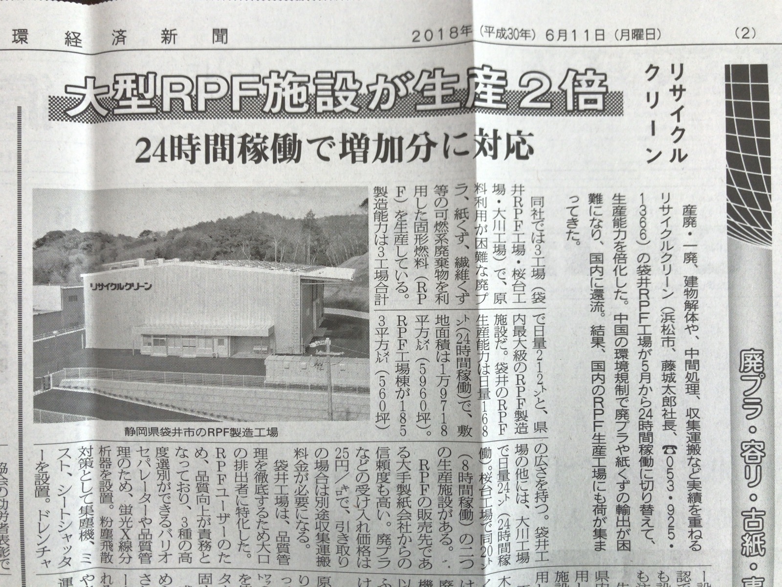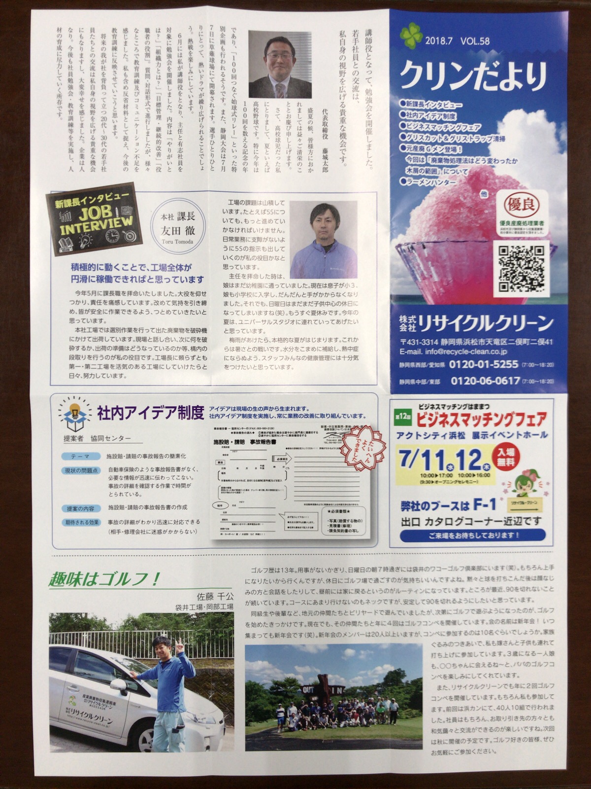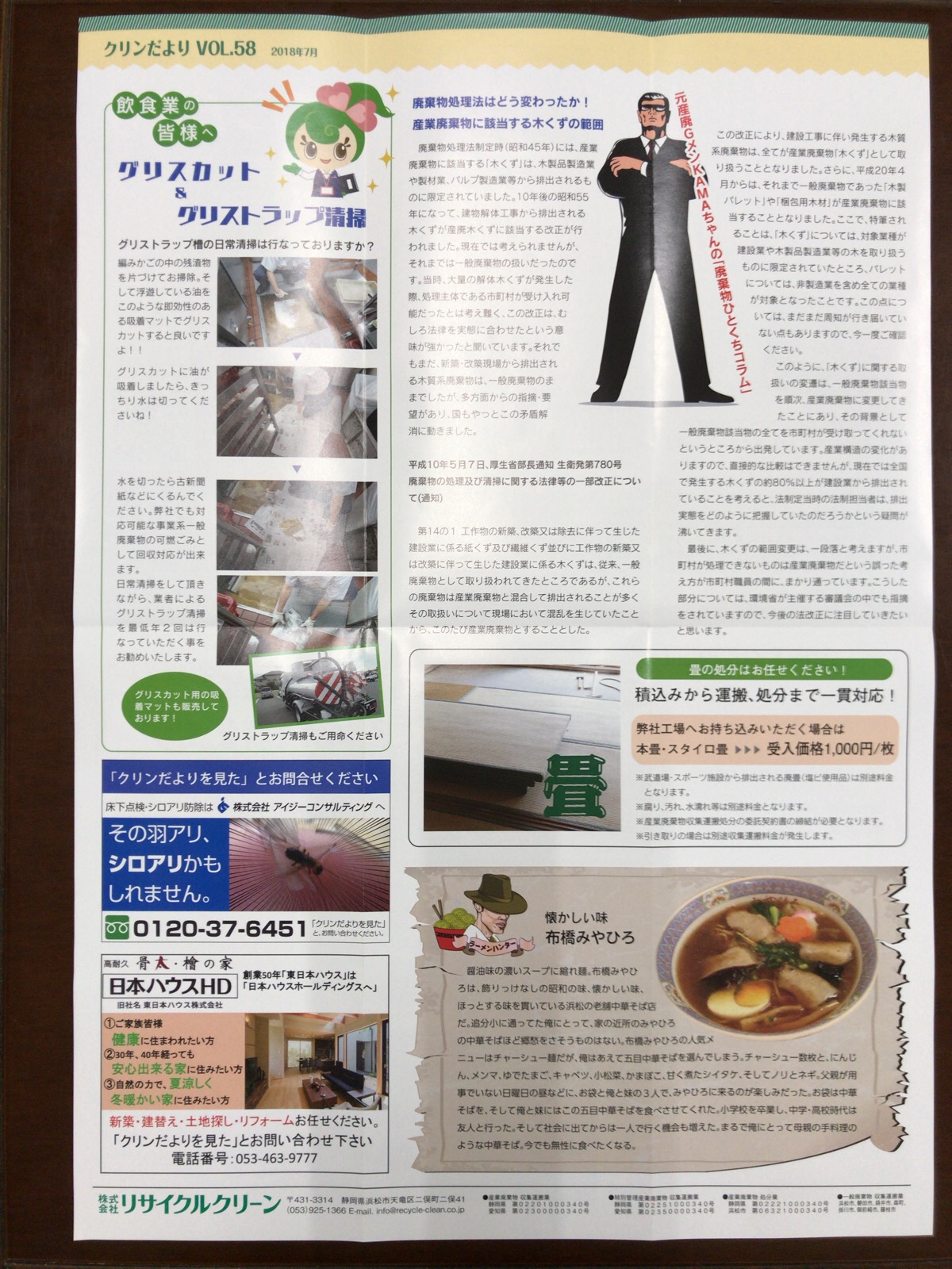 「クリンだより」2018.7 vol.58 完成しました。