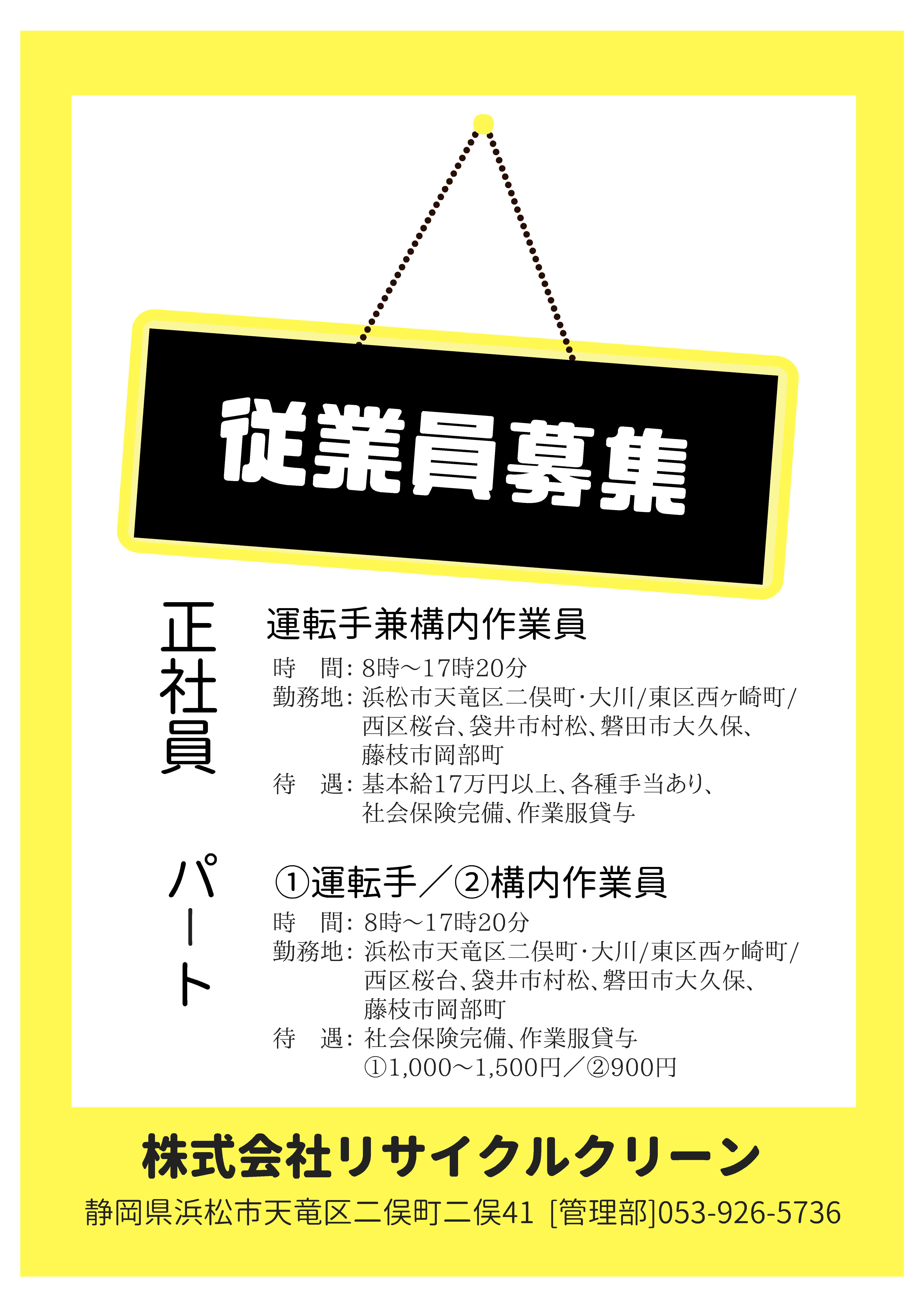 (株)リサイクルクリーン 営業部(053)925-5730