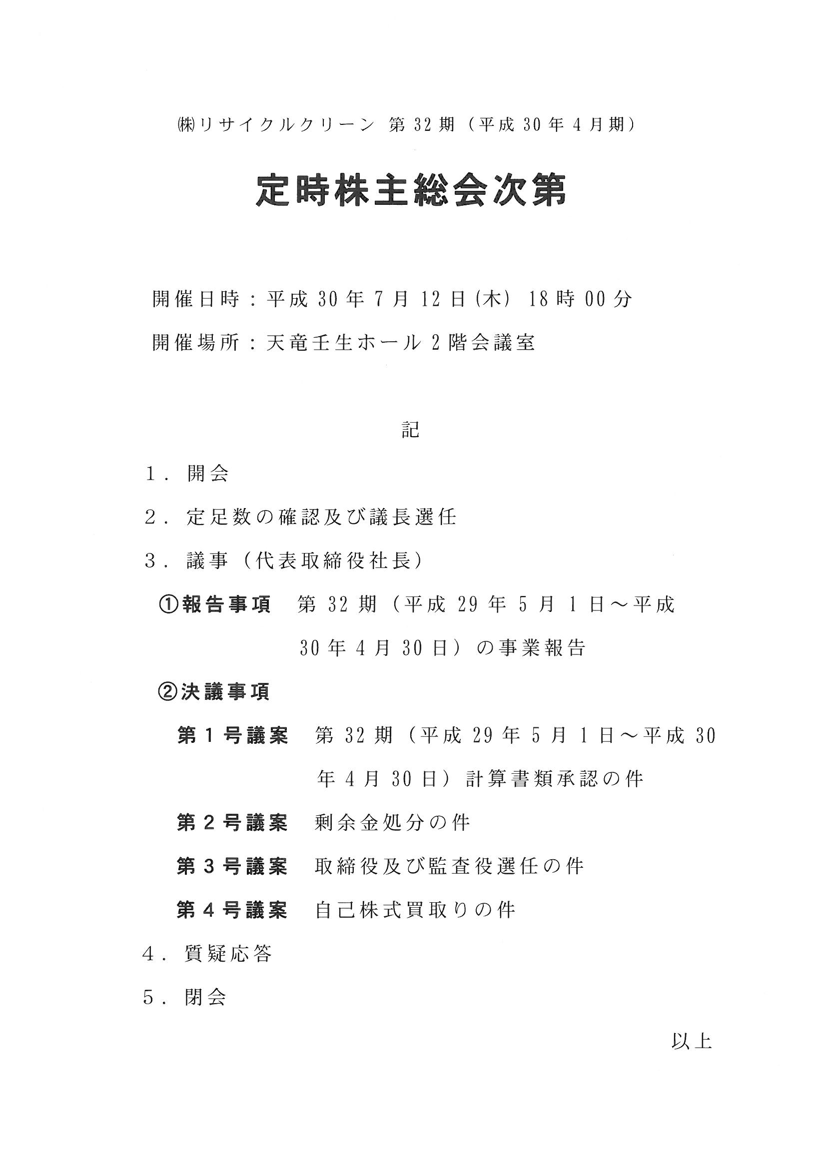 昨日(7月12日)天竜壬生ホールにて、第32期 定時株主総会を開催しました。弊社の株主総会は株主様の他に取引金融機関様、参加を希望する社員各位など多くの利害関係者の参加を歓迎しています。昨日も7行の金融機関様、30名の社員各位が参加してくれました。