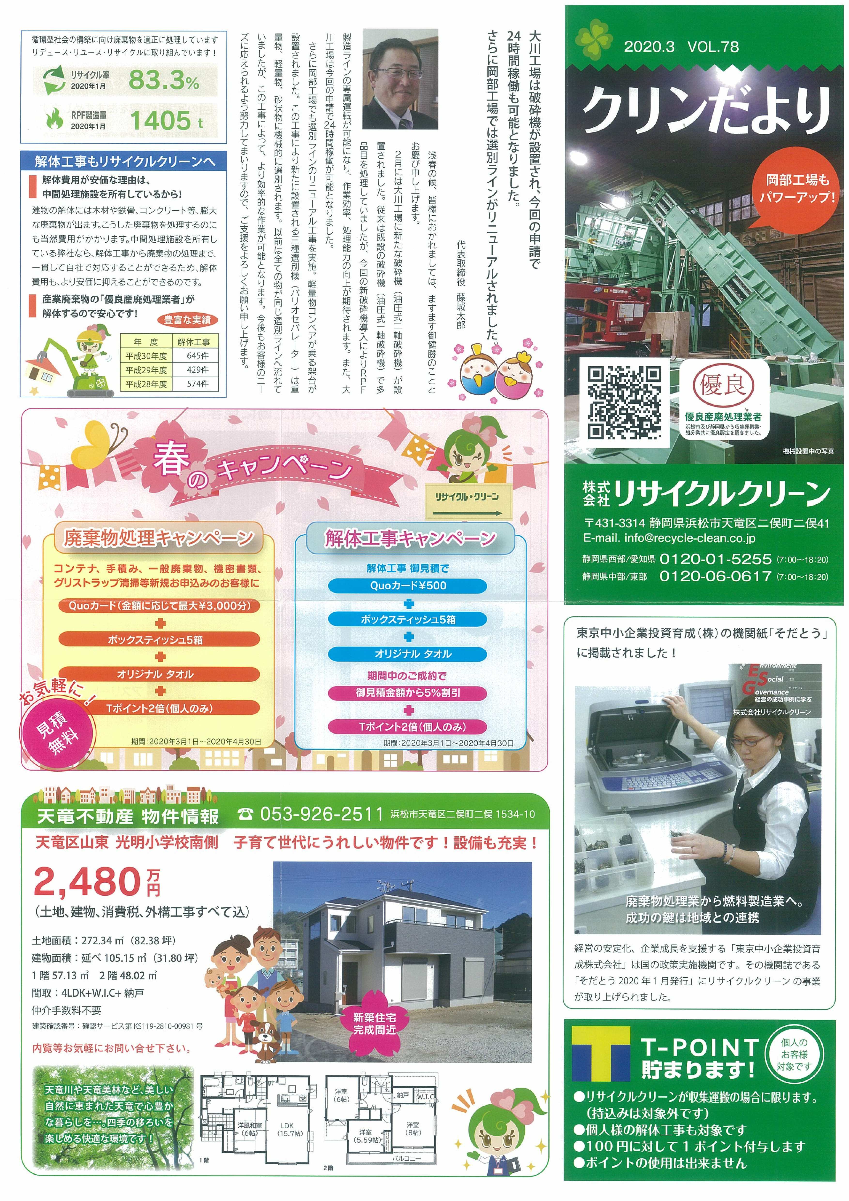 ㈱リサイクルクリーン広報誌「クリンだより」3月号