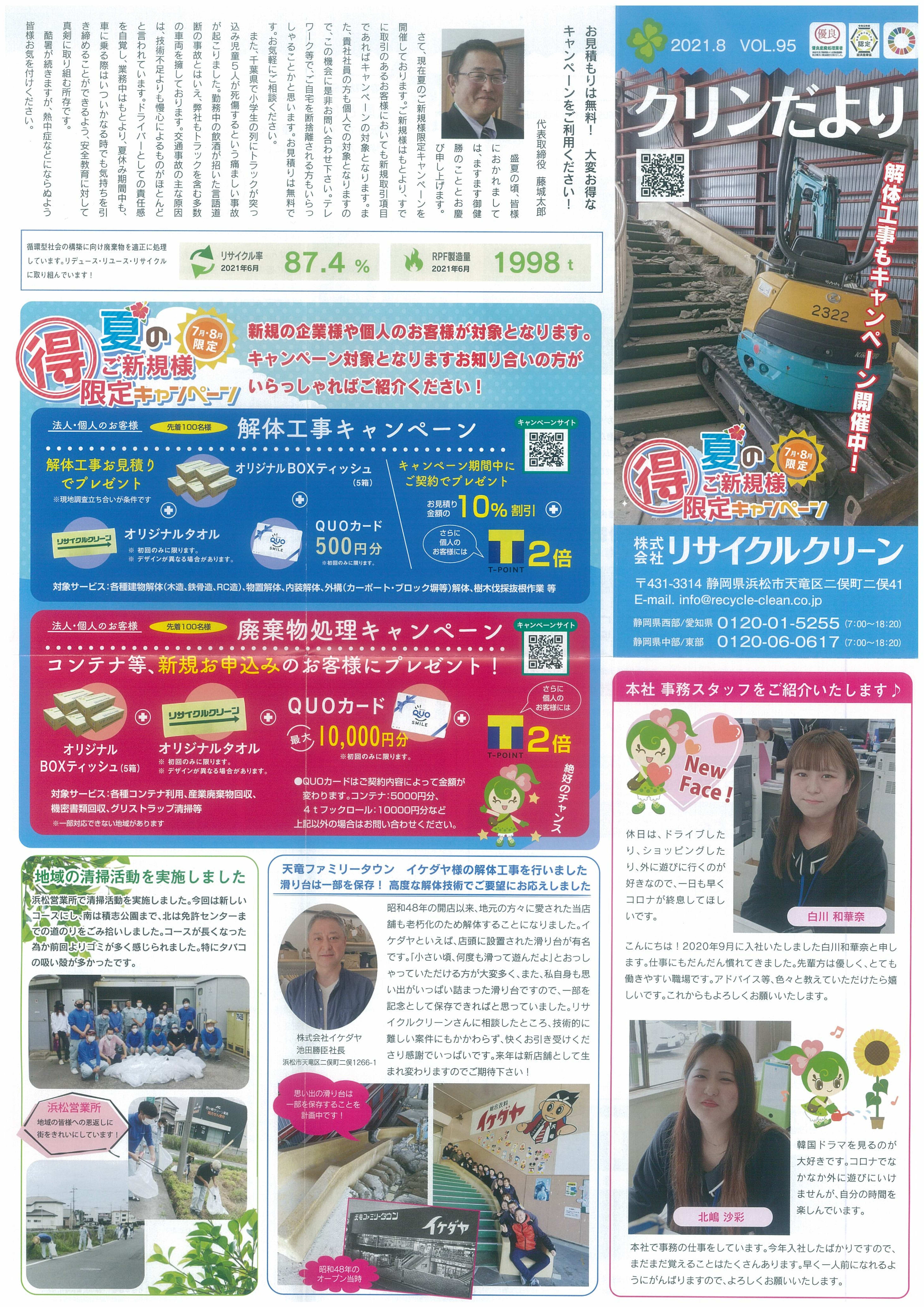 ㈱リサイクルクリーン広報誌「クリンだより」2021.8.VOL.95