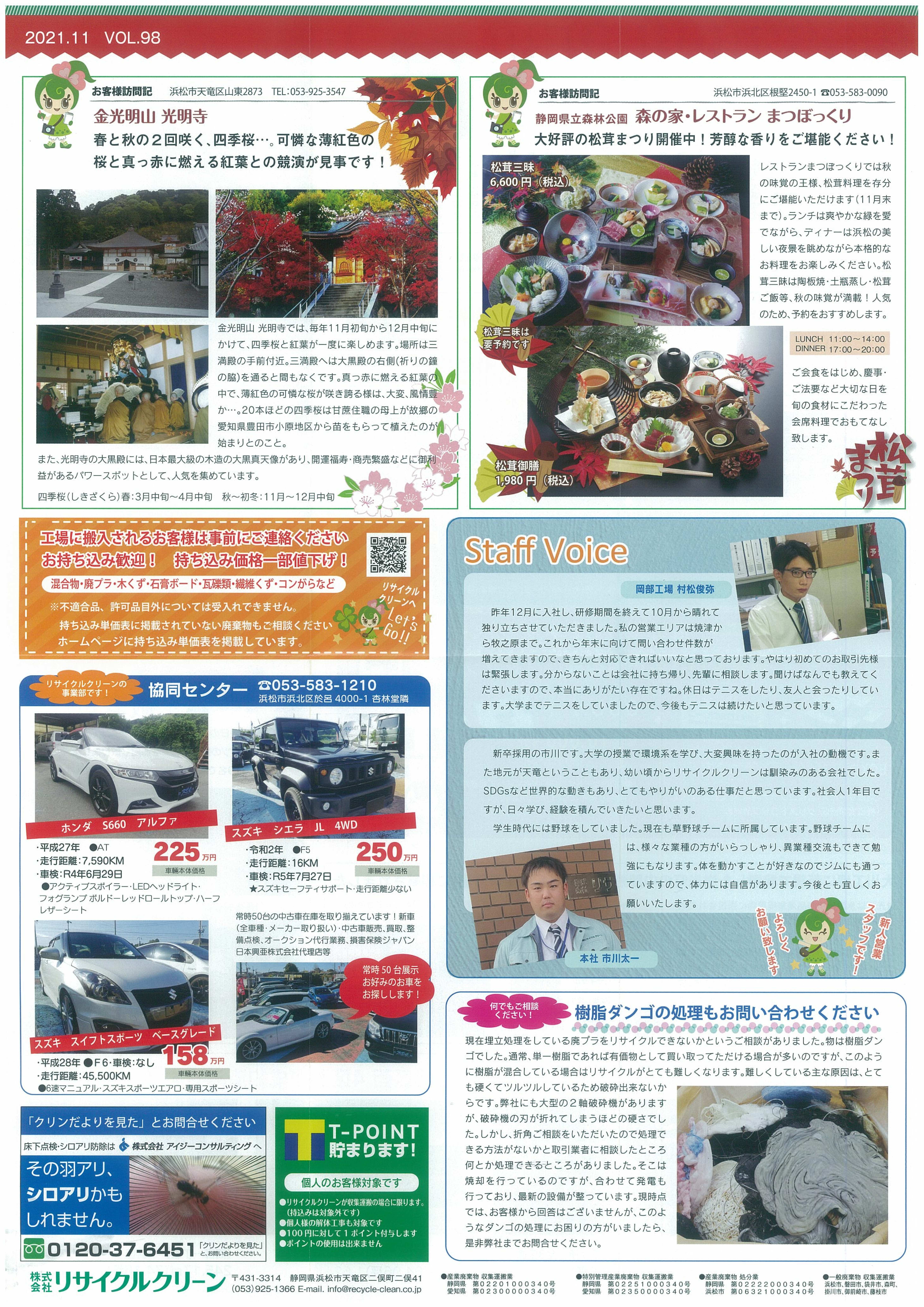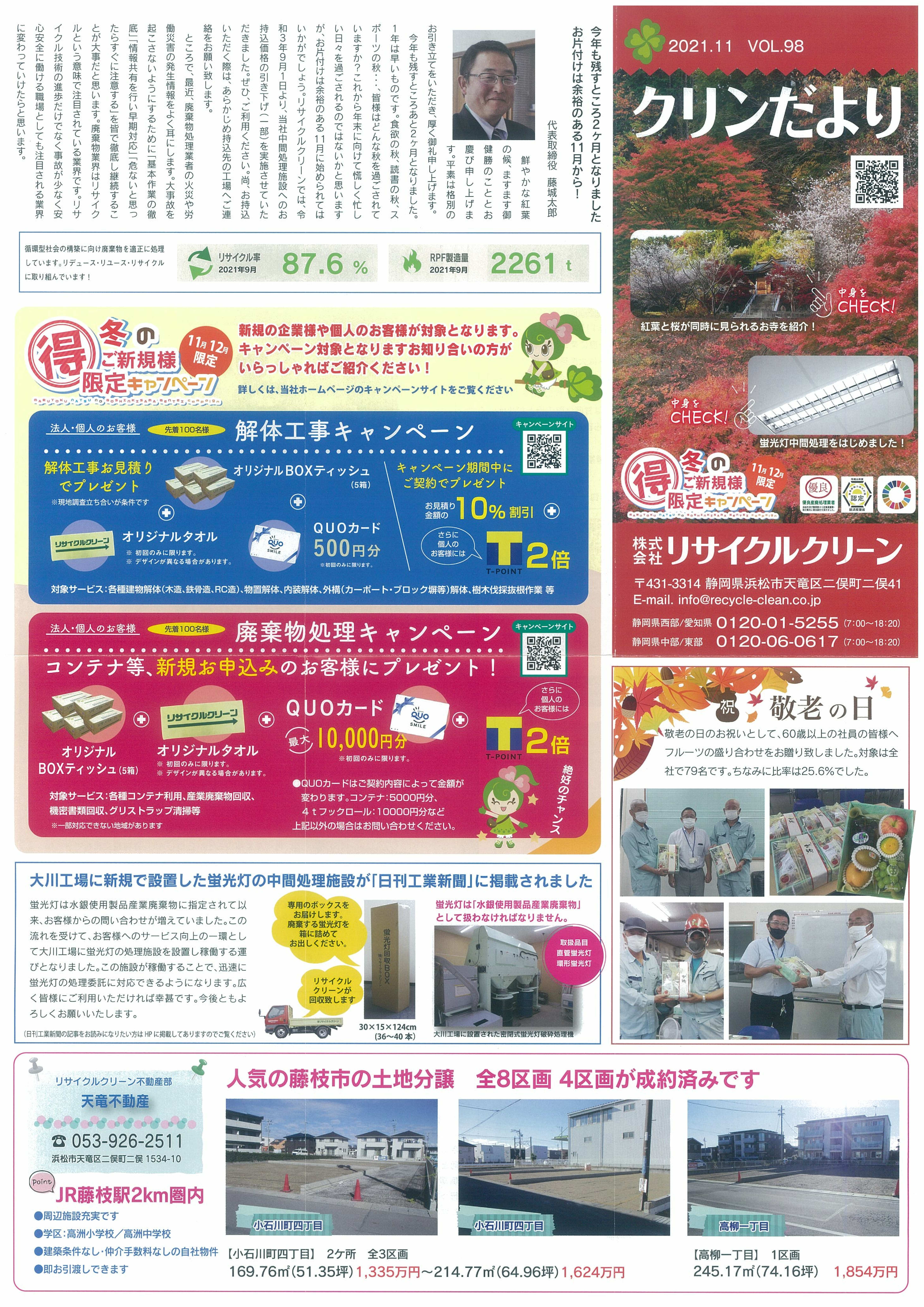㈱リサイクルクリーン広報誌「クリンだより」2021.11.VOL.98