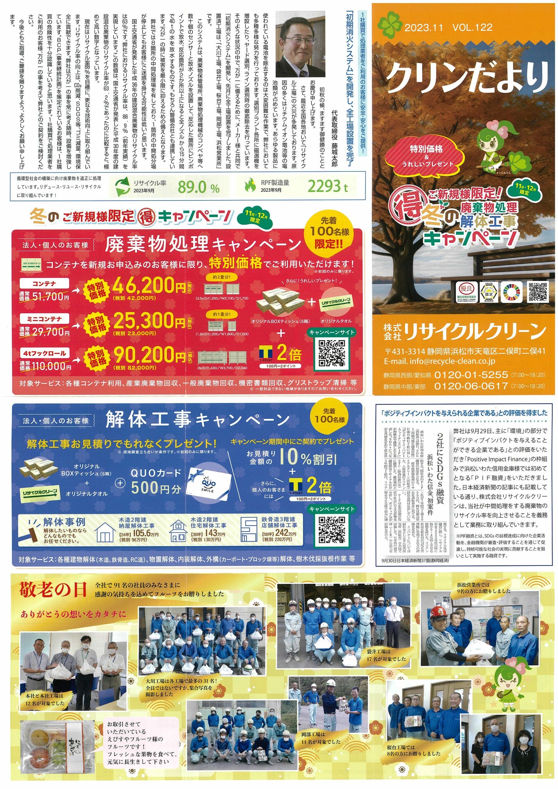 ㈱リサイクルクリーン広報誌「クリンだより」2023.9.VOL.122
