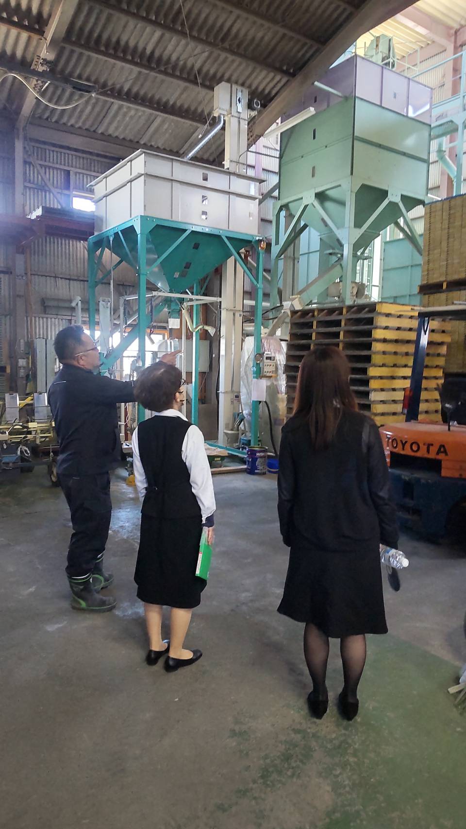 本日は管理部に所属する女性社員3名が激励も兼ねて見学。全く畑違いの仕事ですから興味深く作業の様子を見ていました。
