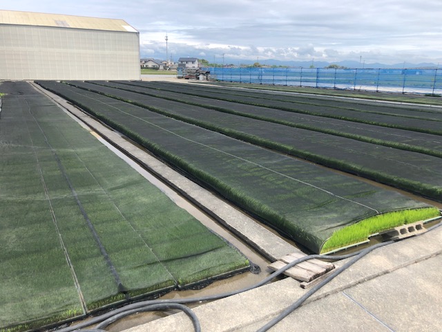 水稲を専らとするため最近までは農閑期として余裕を持って準備を進めていましたが、いよいよ田植えが間近となり俄然慌ただしくなってきました。これは苗場に広げられた稲の苗。