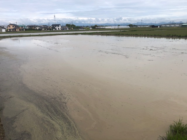 代掻きを済ませた田んぼ。ここは農場主のMさんが担当したとのこと。