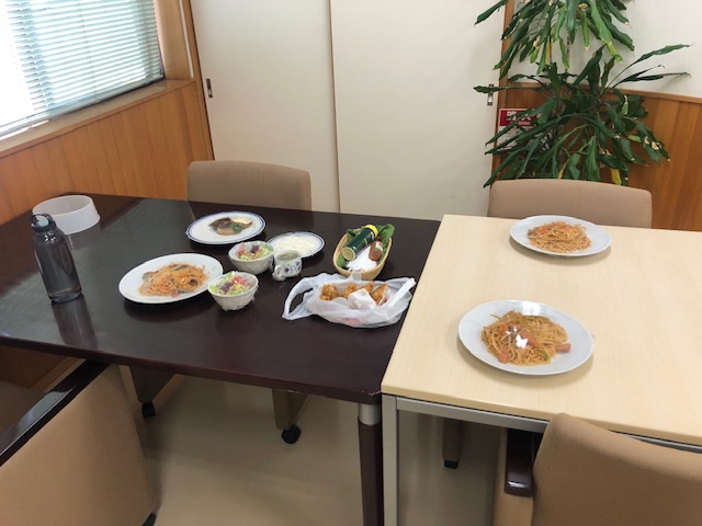 リサイクルクリーンでは各部署ごとに毎月ミーティングを実施していますが、私が所属する管理部はお昼の食事をしながらの「ランチミーティング」と称して実施しています。さあ、12時のチャイムが鳴りましたのでミーティングの開始です。