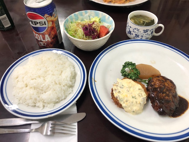 食事を何処で取るか皆で話し合って決めることもミーティングの重要なプロセスです。毎回違う店を選んで楽しみましょう、が基本方針。本日は会社の近くにある洋食屋「ふくすけ」からの出前。上の写真は私が取った日替りのBランチ。