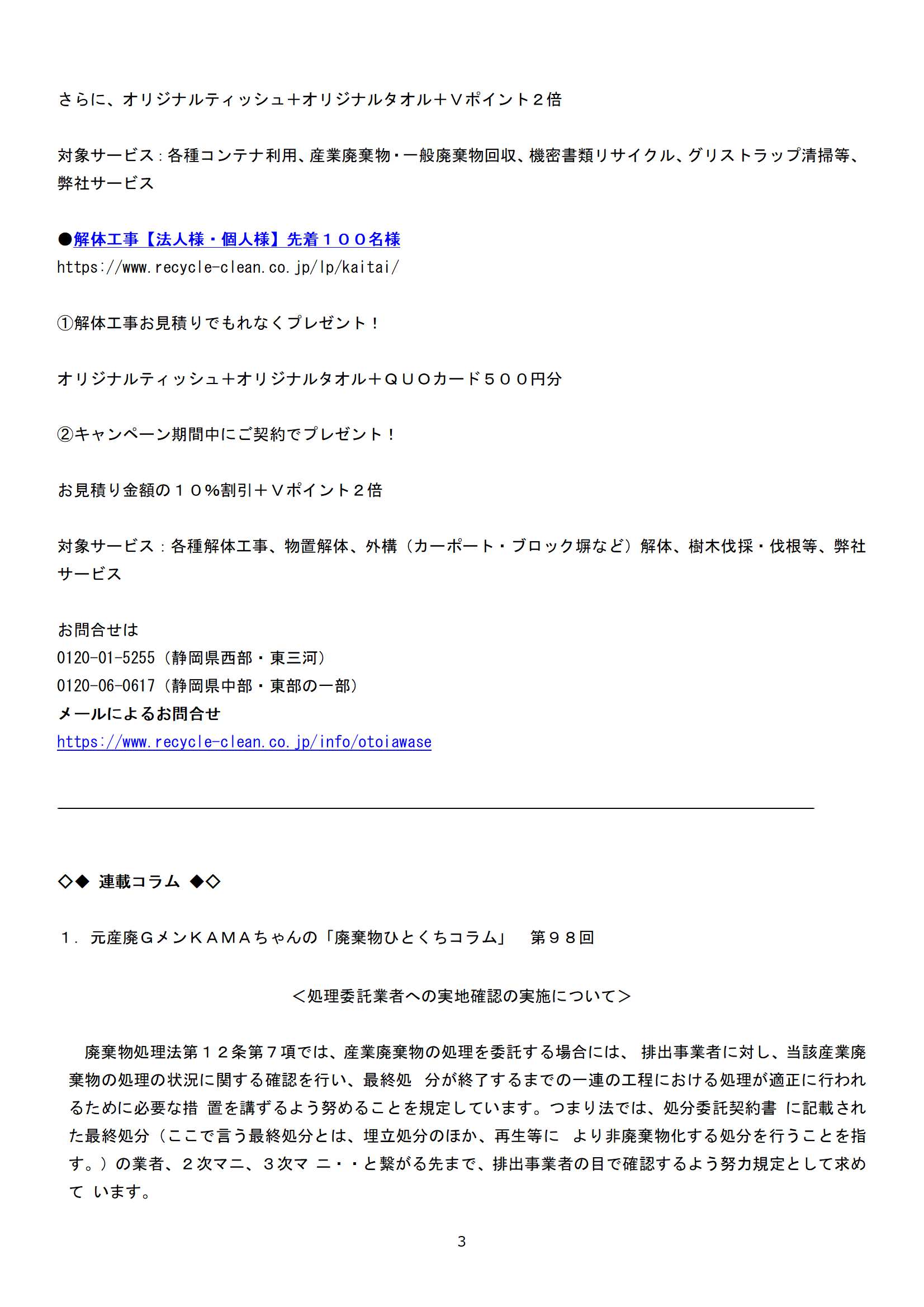 元産廃GメンKAMAちゃんの「廃棄物ひとくちコラム」好評連載中です