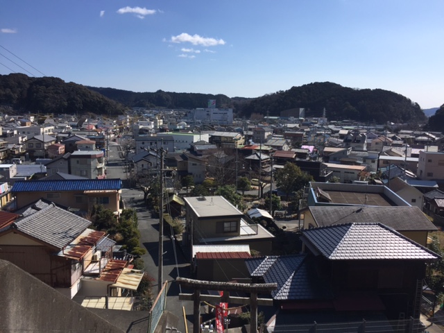 すぐ近くにある城山稲荷神社の階段を登って二俣の町を望む。二俣城址など付近の景観も良く、散歩をするのも楽しめそう。