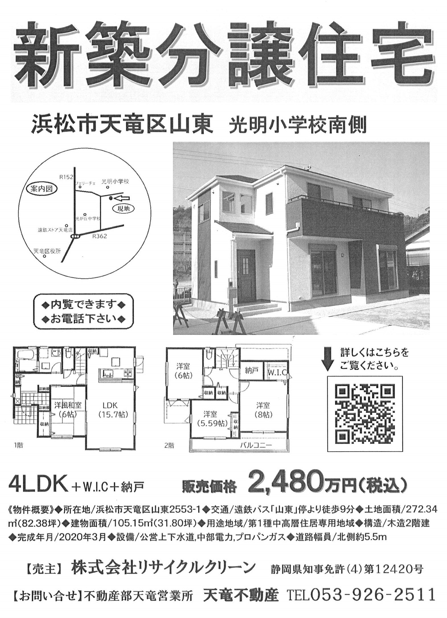 子育て世代におすすめ物件のご案内。浜松市天竜区山東の新築分譲住宅です。完成済みなので即入居も可能。