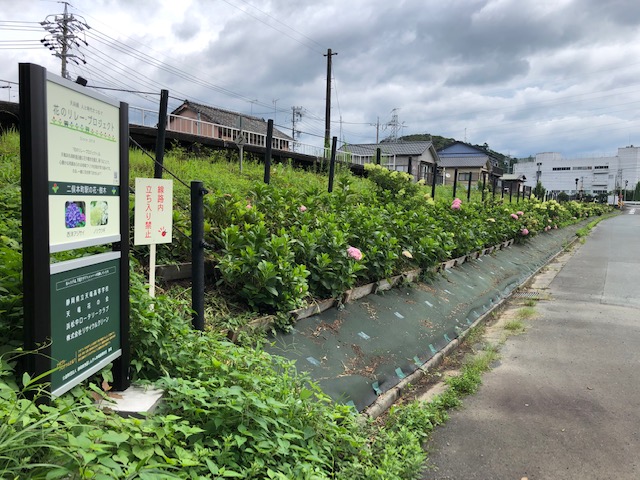 花のリレー・プロジェクトは昨年から開始された活動ですが、二俣本町駅南側に西洋アジサイが270株植栽され、今年の6月にはきれいな花を咲かせました。