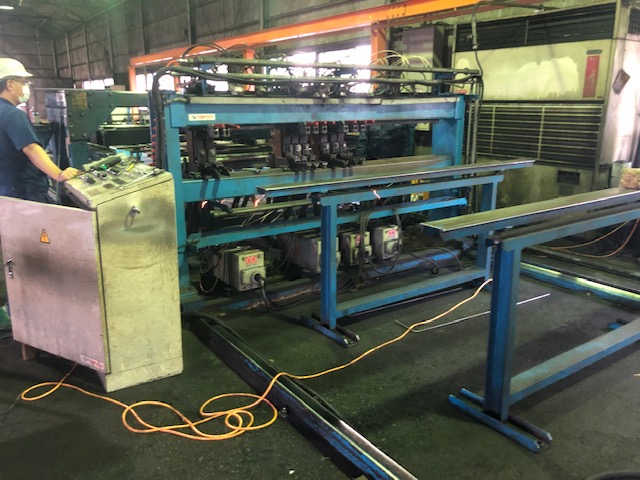天候不順の時期は受注が少なく稼働も低下するため、そのタイミングを利用して工場を半日止め、スターラップ溶接機(8点マルチスポット溶接機)の制御盤の交換を行っています。