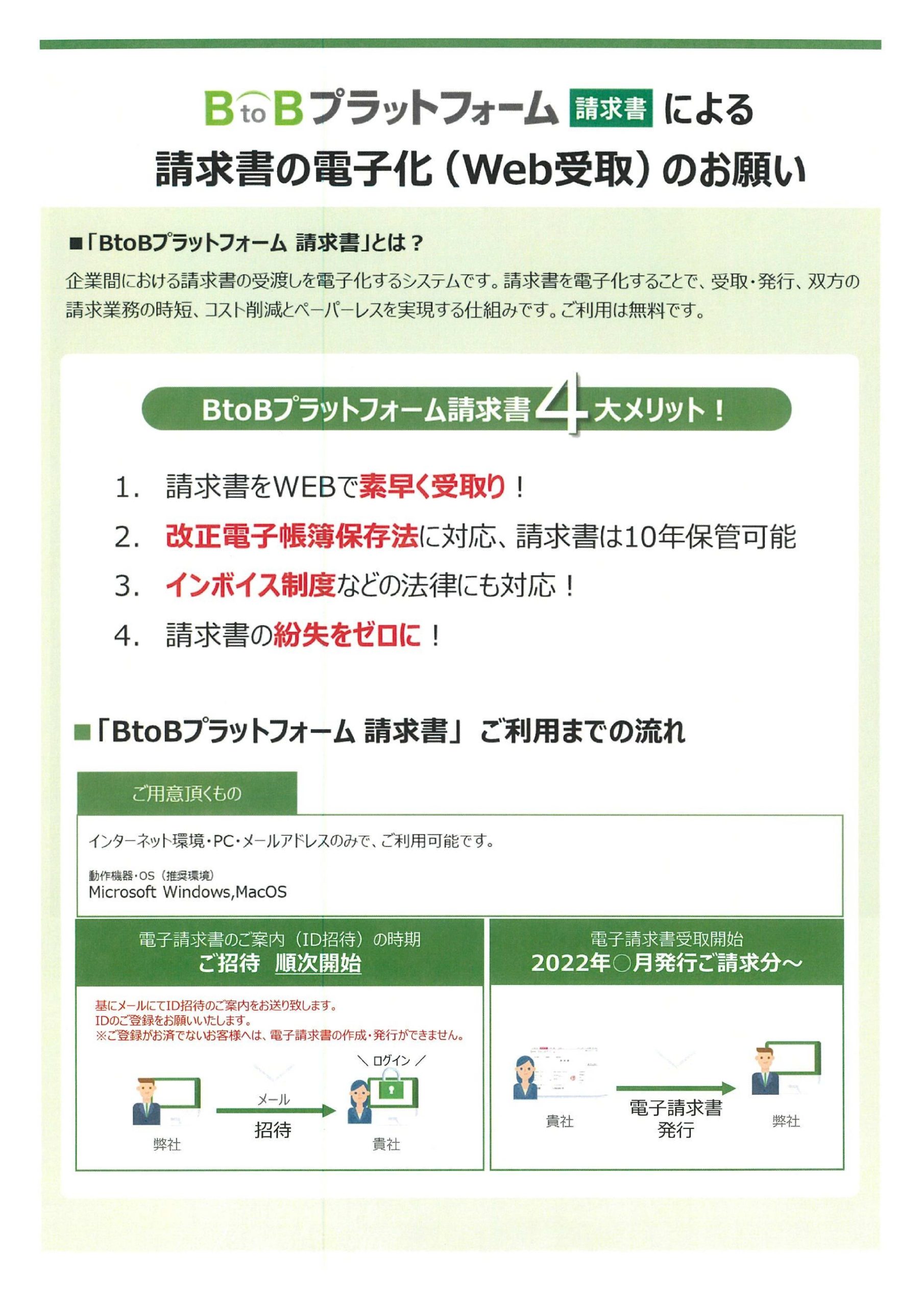 リサイクルクリーンは「BtoBプラットフォーム」を導入し、請求書の電子化(Web受取)に対応しています。