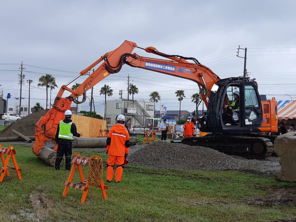 先日、浜松土木事務所様が主幹とする「ミナトリング2022」が開催されました。このイベントは県西部に唯一ある防災拠点港湾の機能を補完する浜名湖を広く県民に知っていただきたいという趣旨があります。そしてこのイベントの中で県民の防災意識の向上を願い湖西市消防本部様、静岡県西部解体工事業協会共催の防災訓練が行われました。防災訓練の内容は土砂崩壊による倒壊建物から人命救助、通路確保を行うもので、重機3台、消防車2台、救急車1台、オペレーター、消防士などが準備されていました。