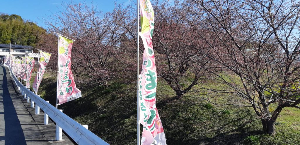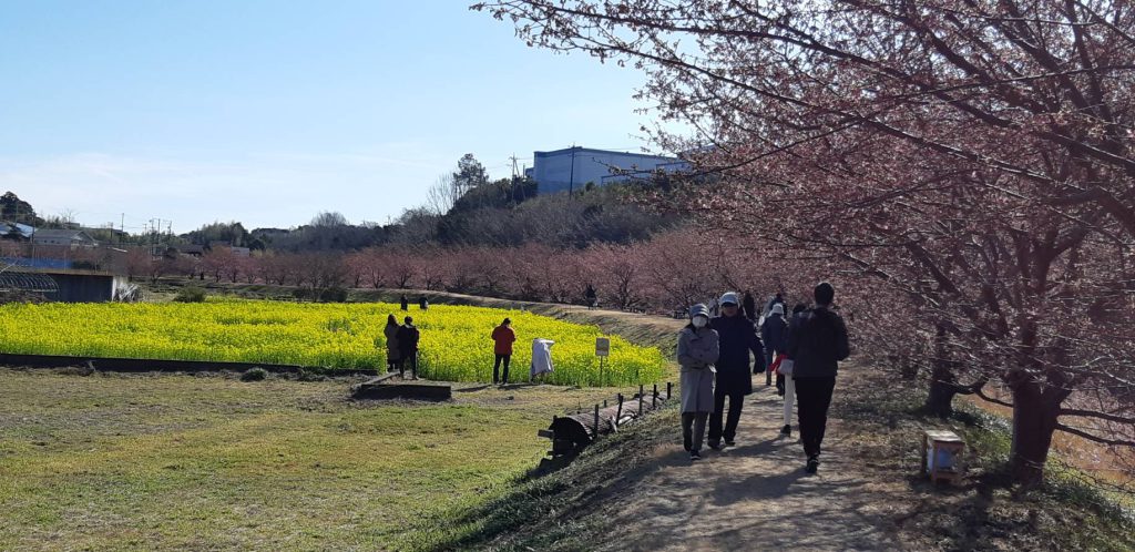 この河川周辺には河津桜や菜の花が沢山咲き今週末は桜祭りが行われていてとても賑わっていました。