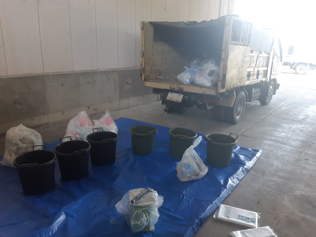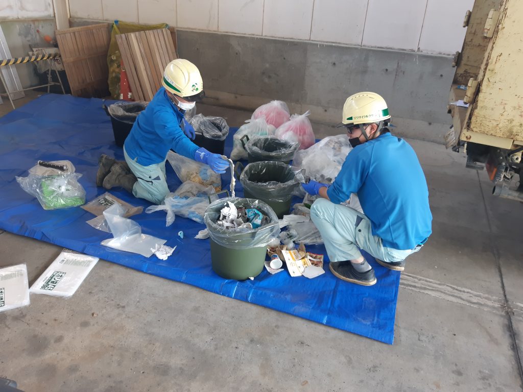 今回回収した業種は病院だったため中にはオムツが多量に入っていました。他には残飯、紙くず、プラスチック類、などなど回収した200kg程のごみをすべて細かく仕分けを行いそれぞれ軽量、写真取りを行いました。