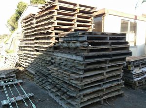 今日はお客様の所へずっとためてあって使わなくなった「木のパレット」の処理の下見に行ってきました。