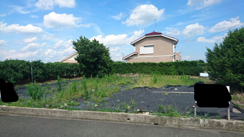 さてさて、今日の下見依頼の1件目は、隣の売地を買って家を建てる予定だが、隣の空き地に防草シート(草が生えてくるのを防ぐシート)が残っているので撤去して処分をした場合の下見でした。