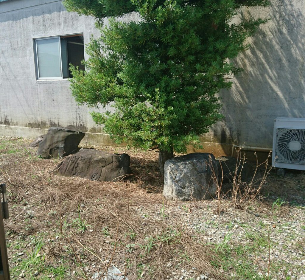 2件目の見積り依頼は、作業場の敷地内にカーポートを作るために邪魔な樹木、石を撤去してほしいと言う見積り依頼でした。