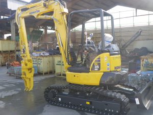 どこの解体業者にもバックホウと全旋回のフォークはありますが、弊社にはミニバックホウのツーピースブームの解体仕様通称ミニ木を所有しております。