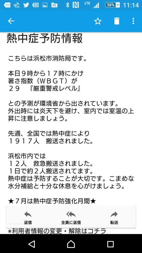 未分類 熱中症には要注意! 2017年7月5日 平林 お疲れ様です。 連日相当な暑さが続いております。 リサイクルクリーンでも、工場内、現場作業、解体現場を行っているので熱中症の危険があります。 適度な休憩、水分補給、塩分補給をしっかり行いましょう!