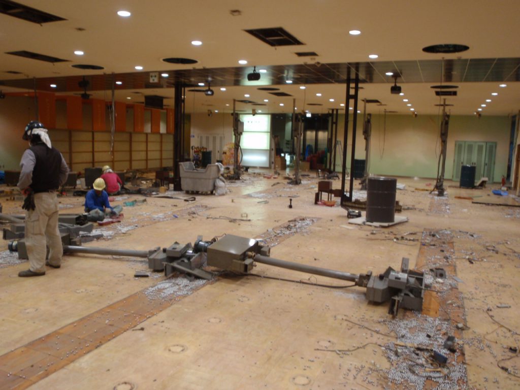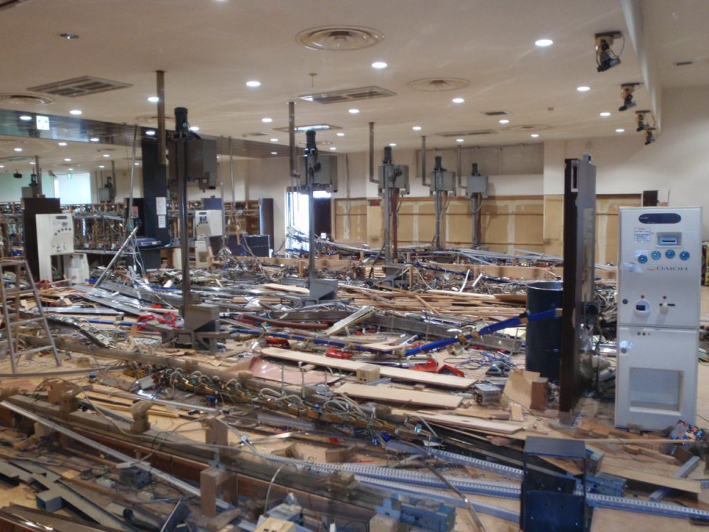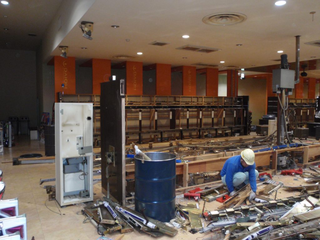 突貫工事でパチンコ店のパチンコ台島の解体を施工しました。