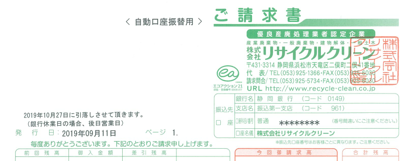 クレジットカード同様に請求書に<自動口座振替用>と記載されるので、誤って支払うという心配はありません