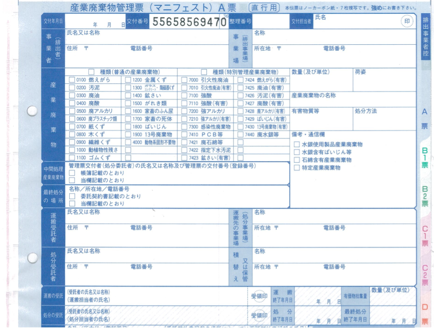 産業廃棄物管理票(マニフェスト)が必要になります。
