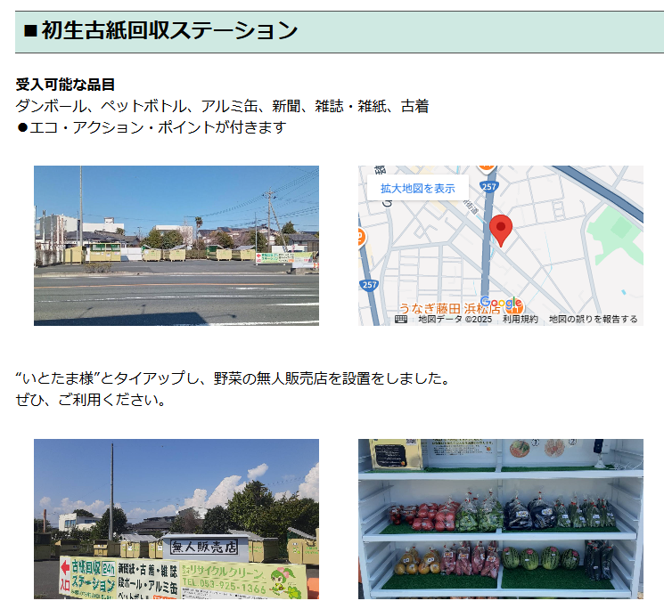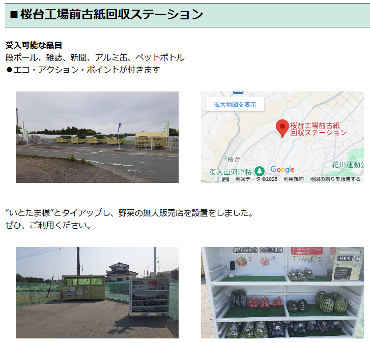 初生の古紙ステーションと、桜台工場前のステーションに設置されました!