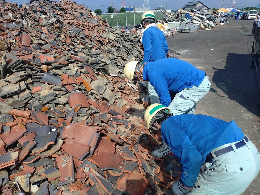弊社担当は、瓦・がれき等を運搬してきた車両からの荷下ろし・分別等でした。